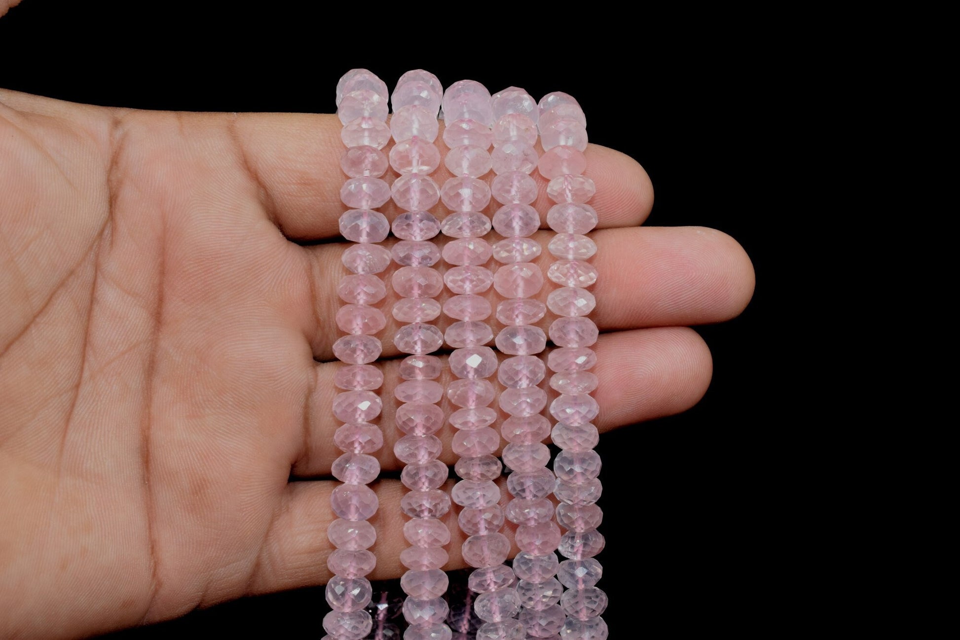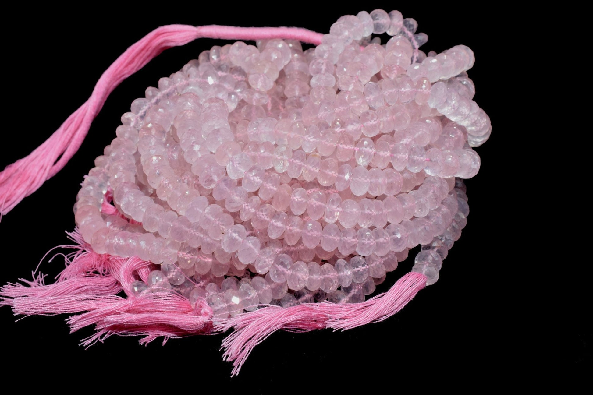 Rose Quartz Beads Grade AAA Genuine Gemstone Faceted Rondelle Loose Beads, 7.5x8mm Size Rose Quartz Beads, Gemstone Faceted Rondelle Beads