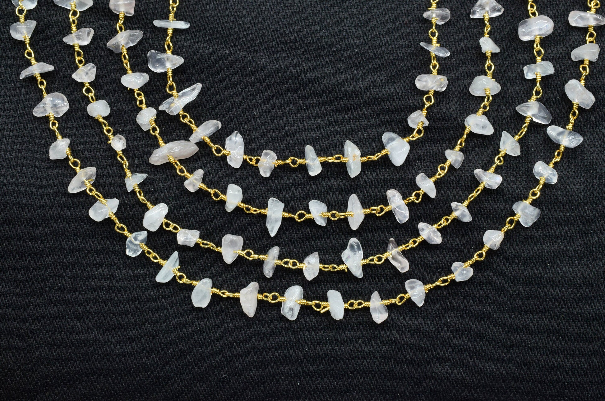 Rose Quartz Chips Rosary Chain,Nugget Rosary Chain,Finding Wire Wrap Necklace Chain,Gemstone Rosary Necklace,Handmade Jewelry Carft Supplies