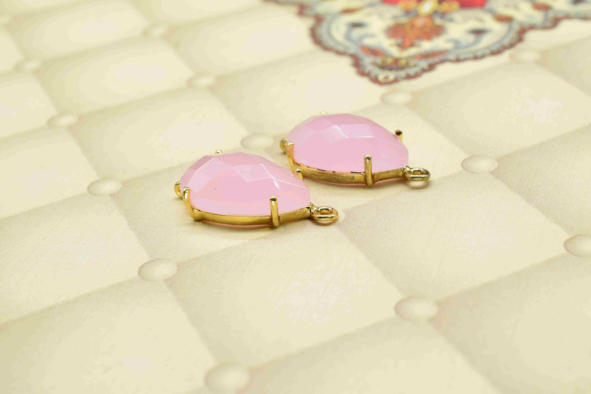 Rose Quartz Connector,Pink Quartz jewelry,Pink Quartz Bezel Pendant,double bail connectors, Prong Set Bezel,Handmade Gemstone Bezel,Gift