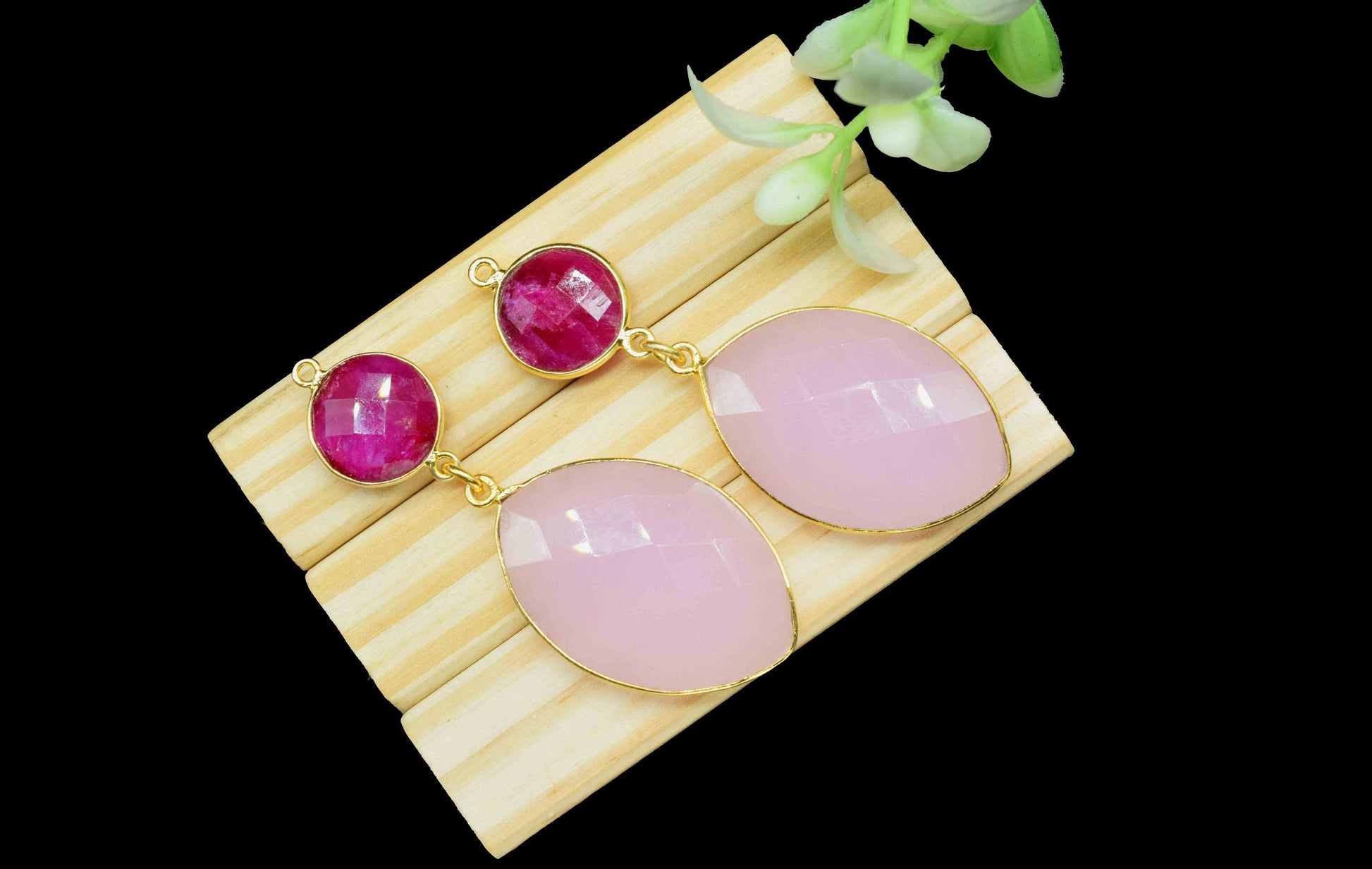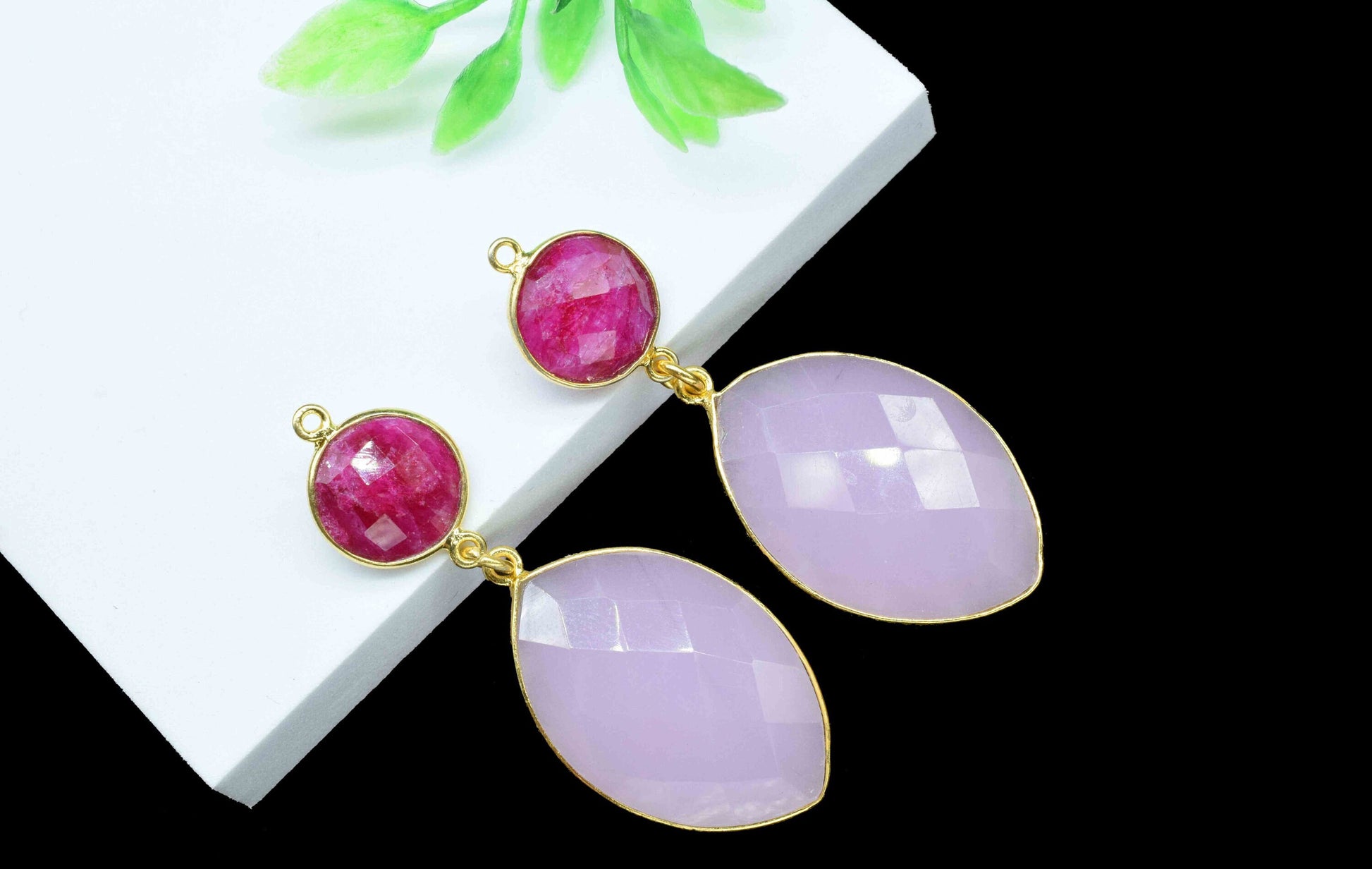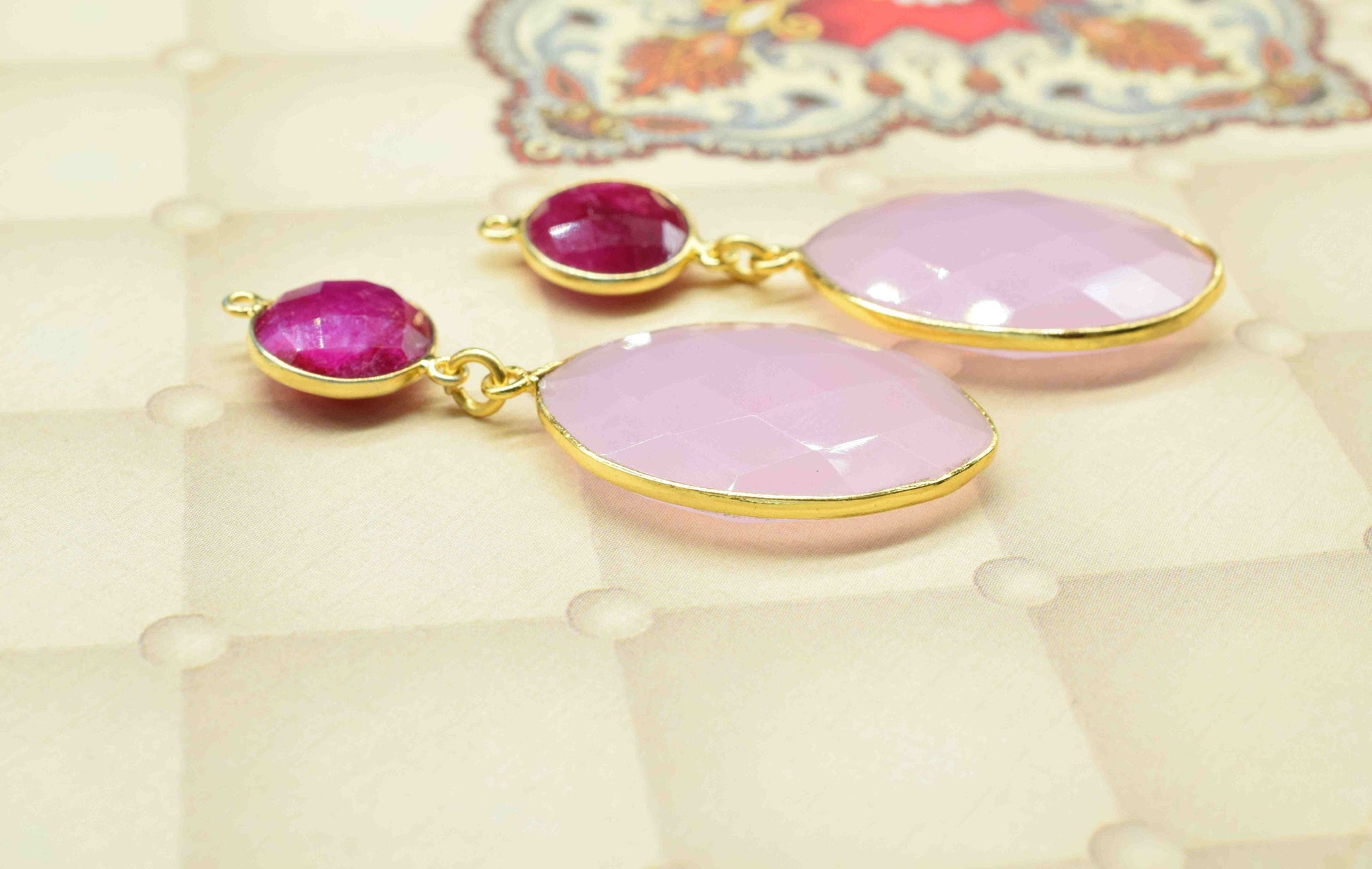 .Rose Quartz Dangle pendant Connector,Handmade jewelry,Ruby pendant Charms,Component pendant,Station Bezel Link,Multi Gemstone Dangle Earring
