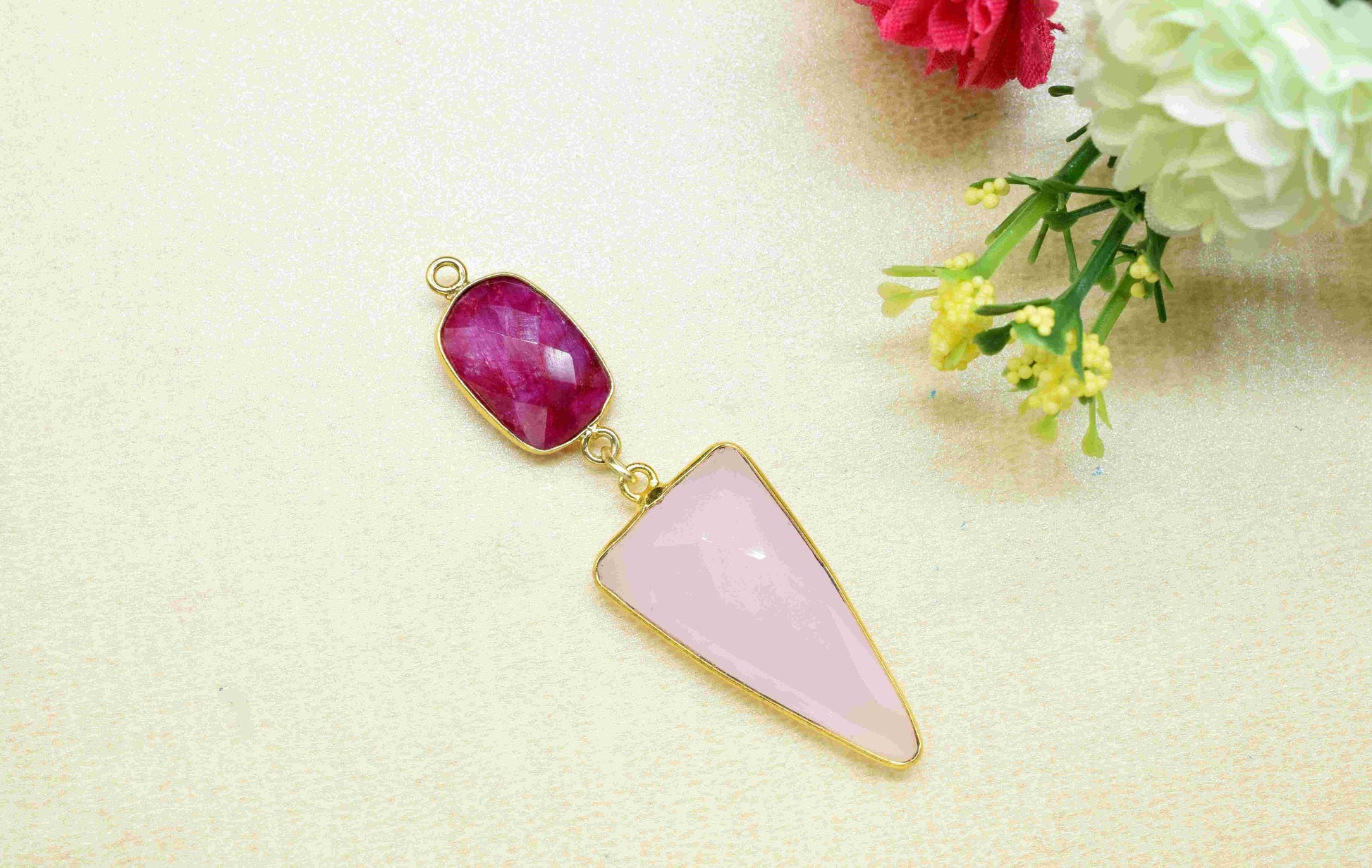 .Rose Quartz Pendant Charms , Ruby Dangle Earring Component , Multi Gemstone Dangle Earring , Component Jewelry , B'day Gift
