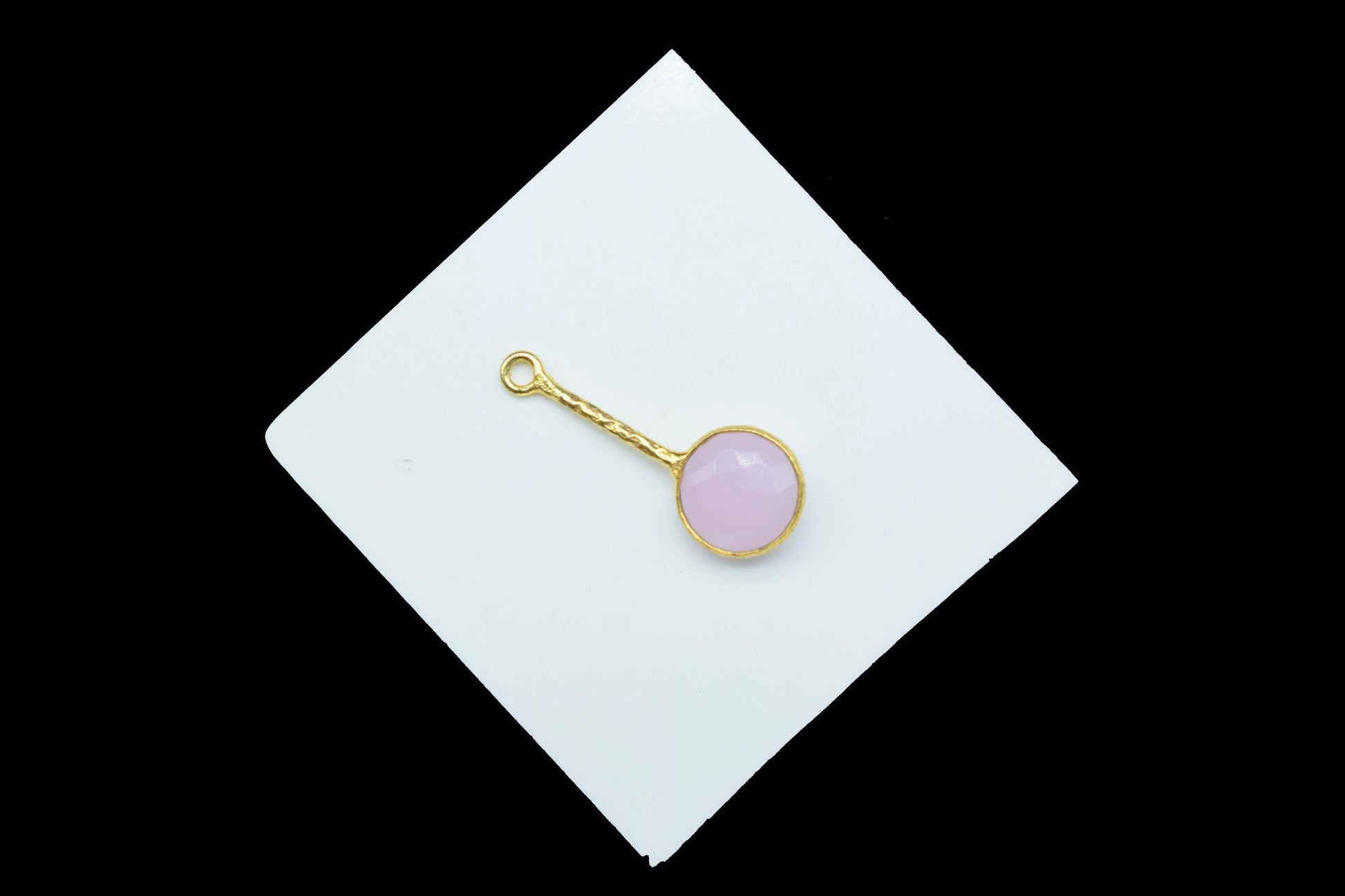 Rose Quartz Pendant/Gemstone Component/Single Bail Charm/Necklace Pendant/Round Shape Charm/Wholesale Supply/Gold Plated Jewellery/Gift