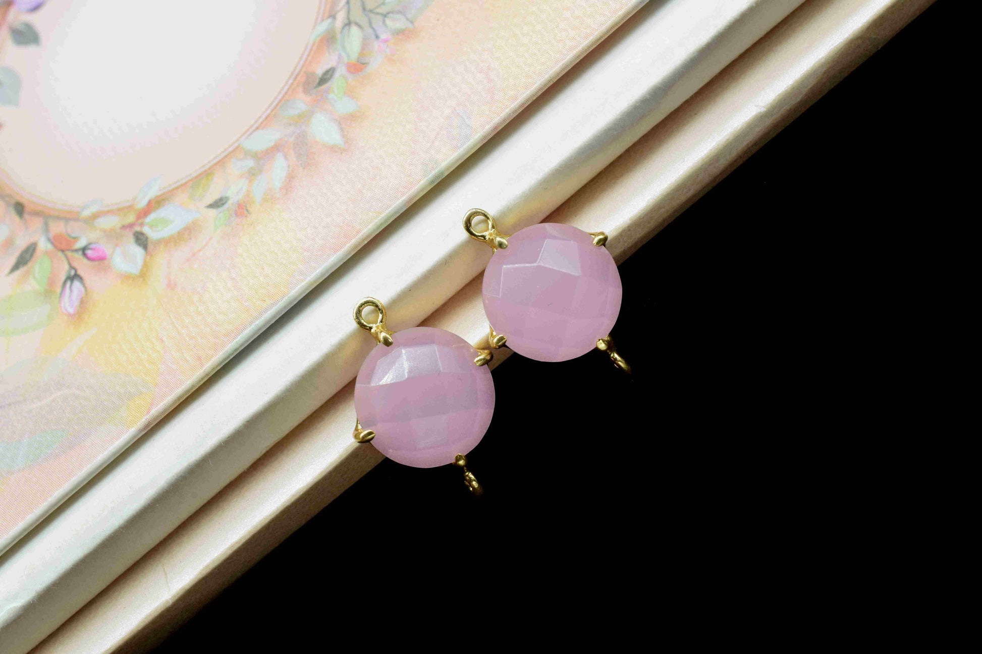 .Rose Quartz Round Connector,double bail connector,Rose Quartz jewelry,Handmade Gemstone Bezel,Pink Quartz Prong Bezel Connector Jewelry,Gift