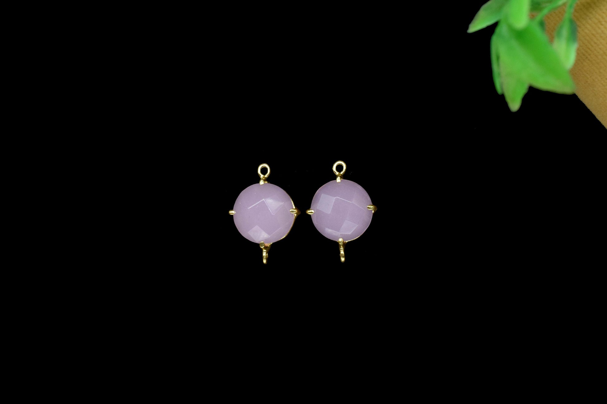 Rose Quartz Round Connector,double bail connector,Rose Quartz jewelry,Handmade Gemstone Bezel,Pink Quartz Prong Bezel Connector Jewelry,Gift