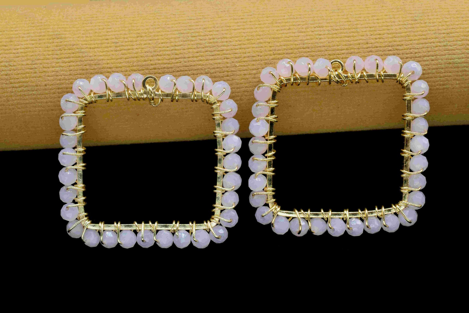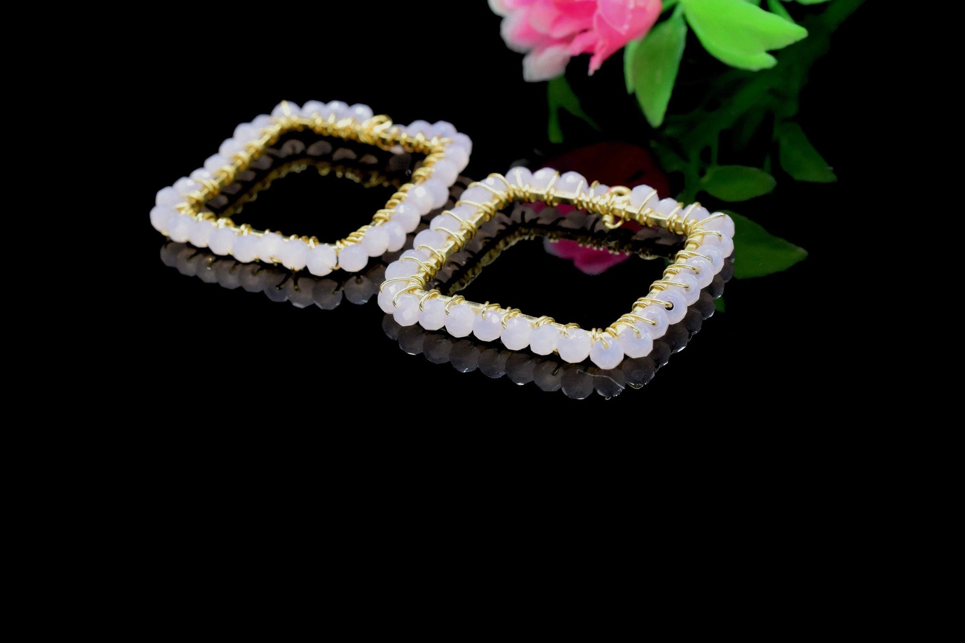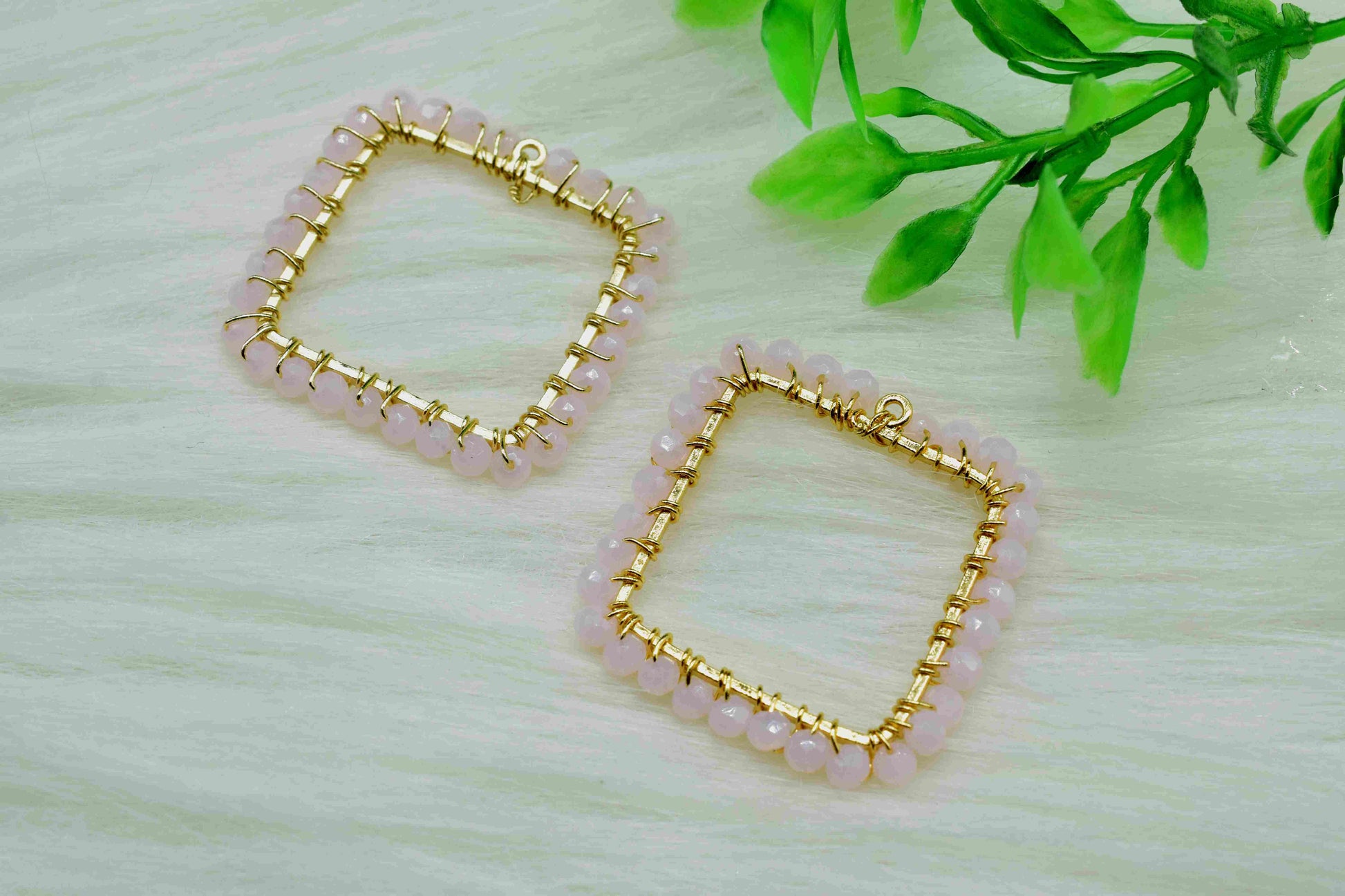 .Rose Quartz Wire Wrapped Dangle Connector, Gemstone Component, Handmade Earring, Finding Necklace Component Jewellery,Beaded Earring Connector