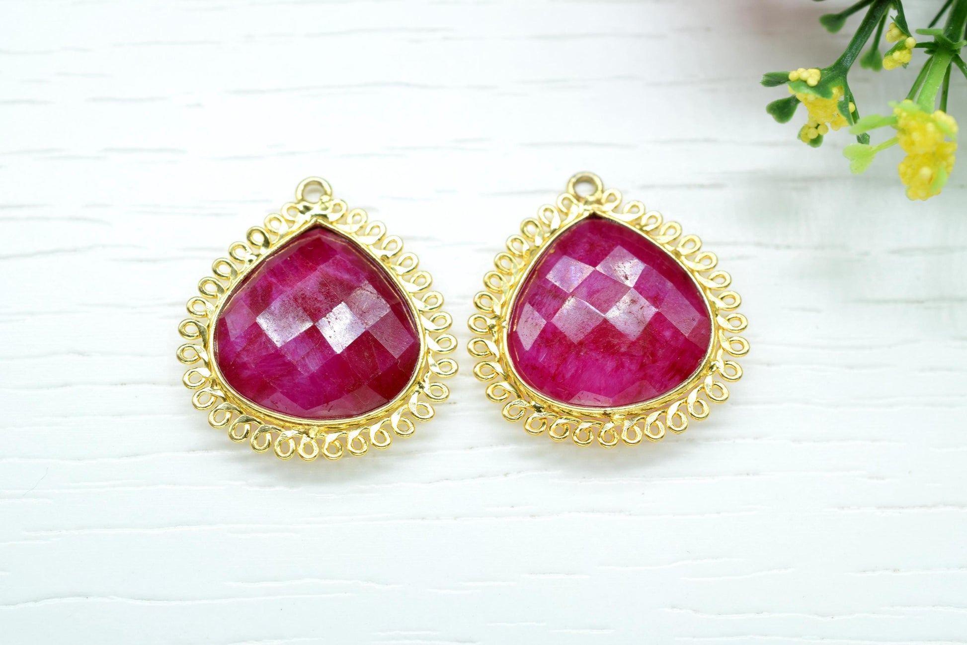 Ruby 20mm Heart Bezel Charms,Gemstone Brass Component,Single Bail Pendant,Handmade Jewellery Connectors,Wholesale Jewelry,Bday Gift