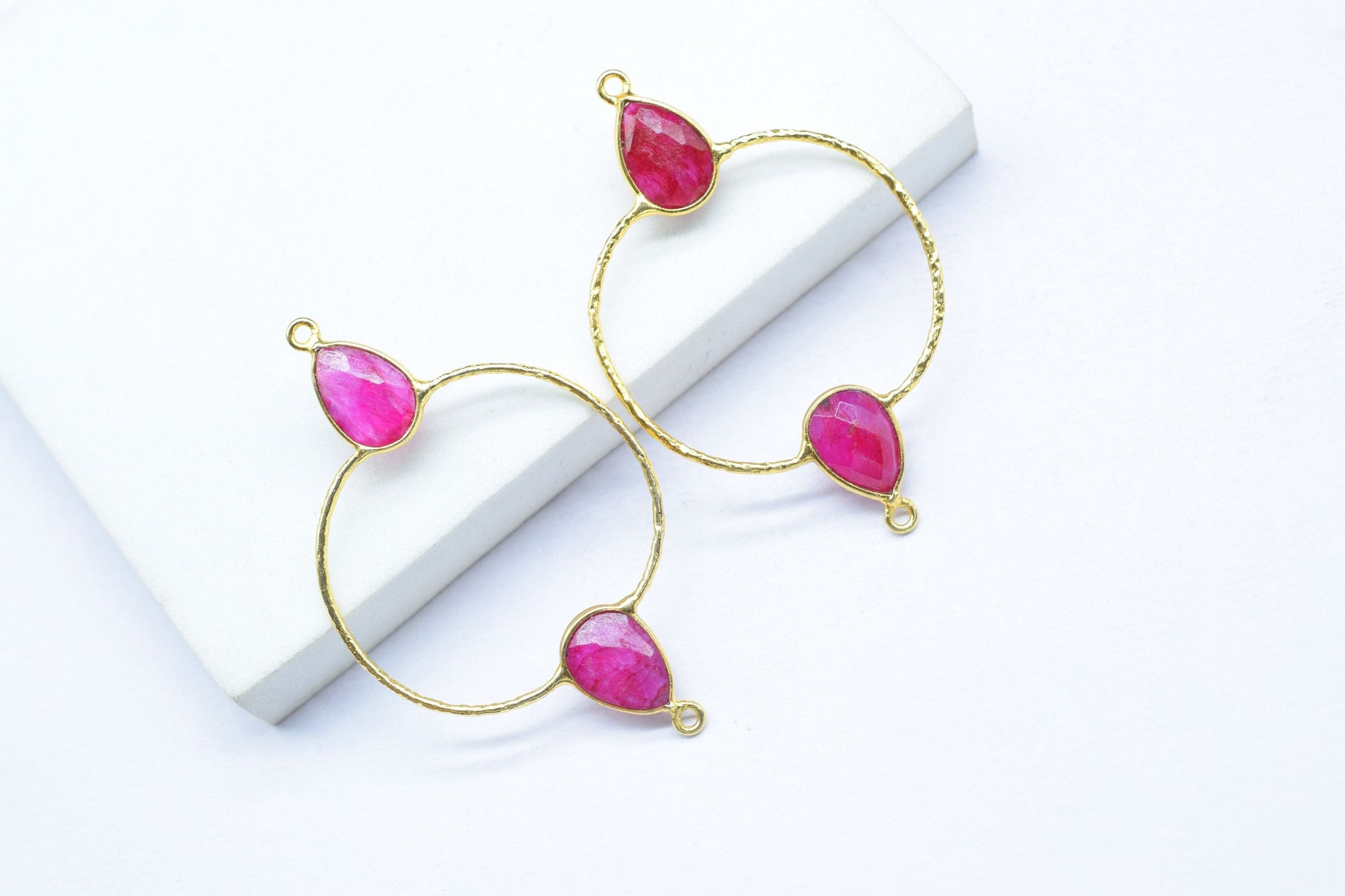 Ruby Bezel Connector,Handmade jewellery,Double Bail Connector,Ruby Jewelry Components,Pear Shape Bezel Charms,Ruby Earring Connectors,