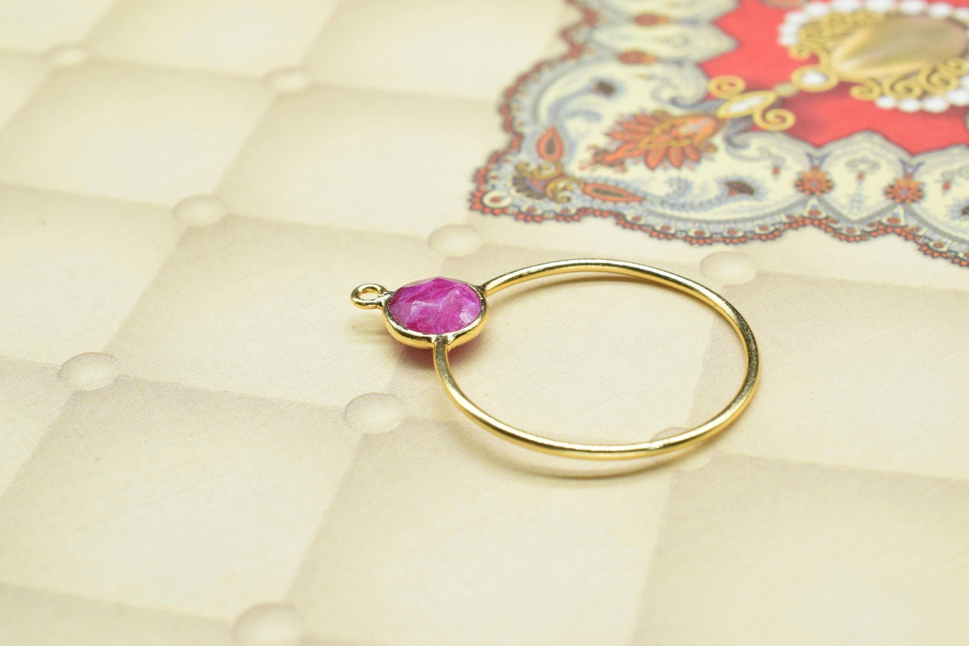 Ruby Findings Pendants,Diy Components Earring,Craft Supplies,Handmade Beads Jewelry,Findings Round Bezel Pendant,Single bail Station Link