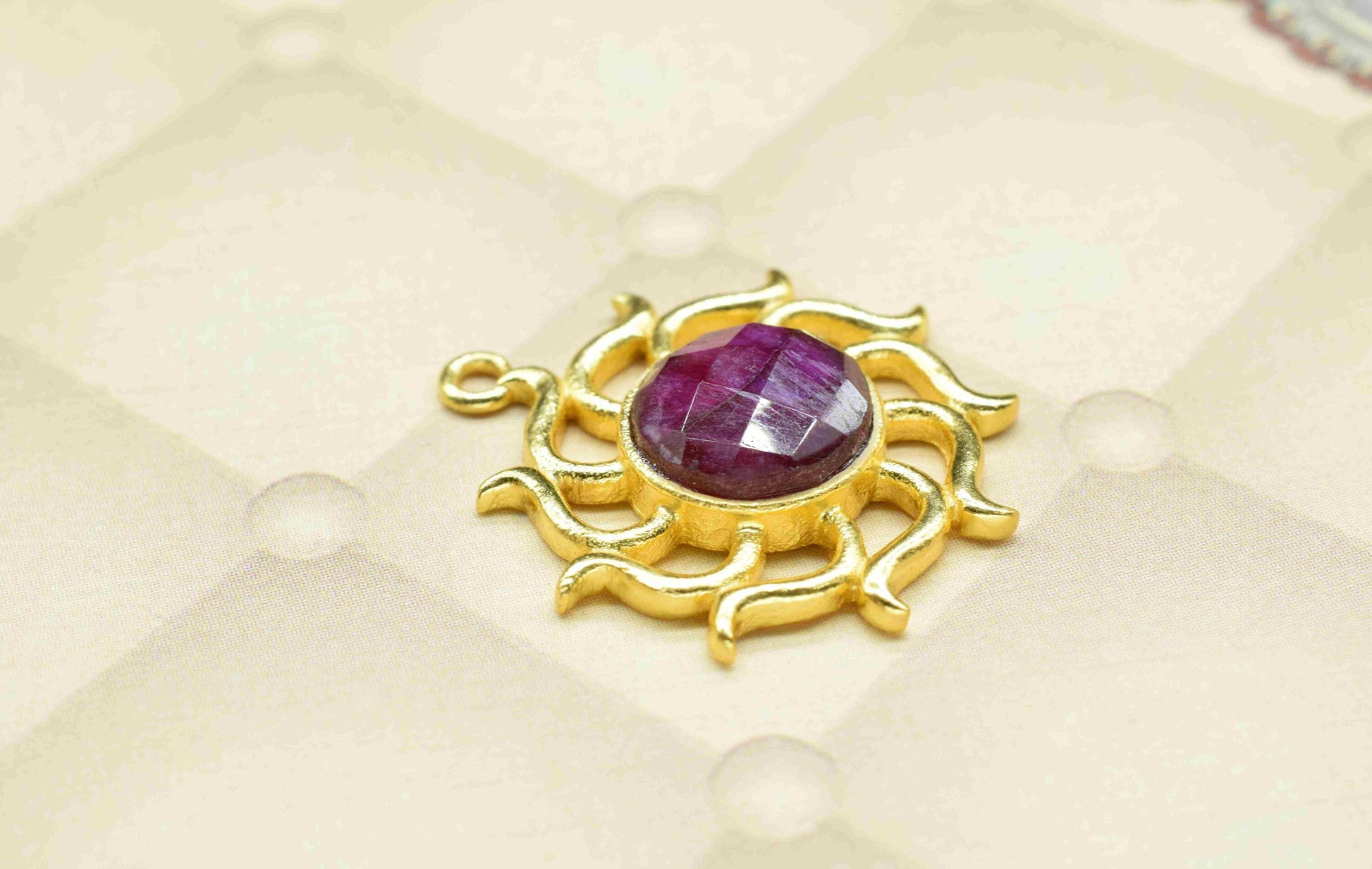 Ruby Gemstone Component, Single Bail Charm , Ruby Connector Pendant , Gold Plated Connectors , Earring Component , B'day Gift