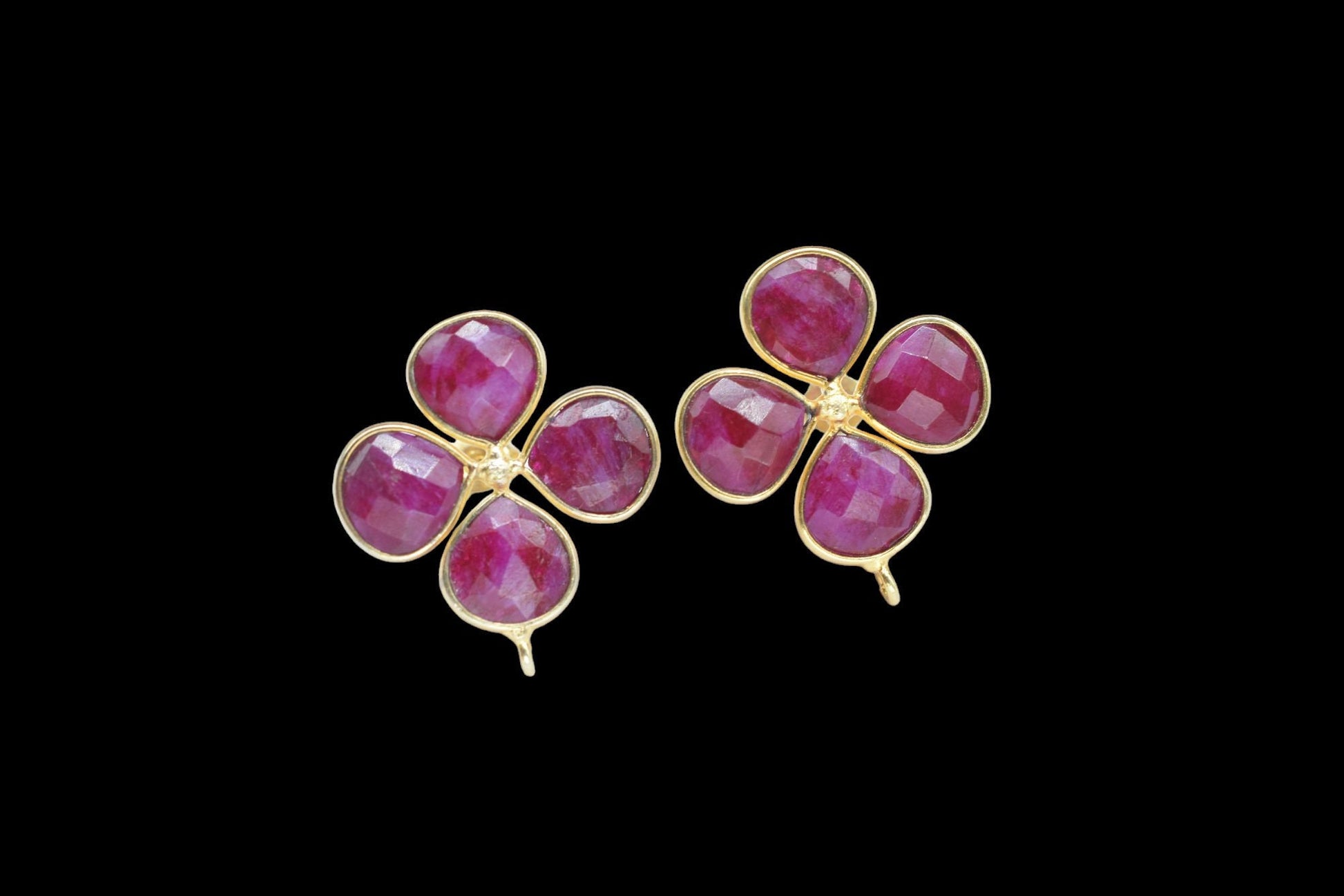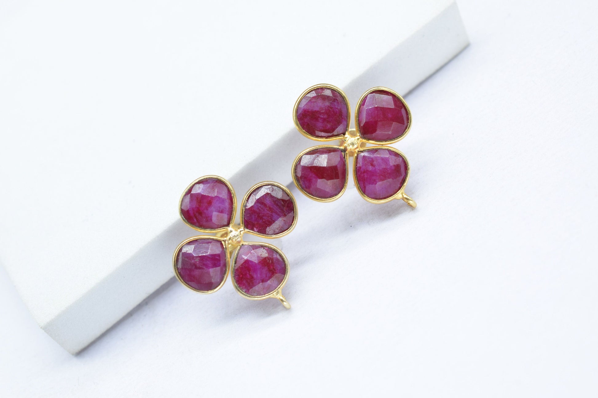 Ruby Gemstone Earring Connector/Gold Plated Jewelry/Ruby Handmade Jewelry/Bezel Component/Jewelry making Stone/Heart Shape Earring/Gift