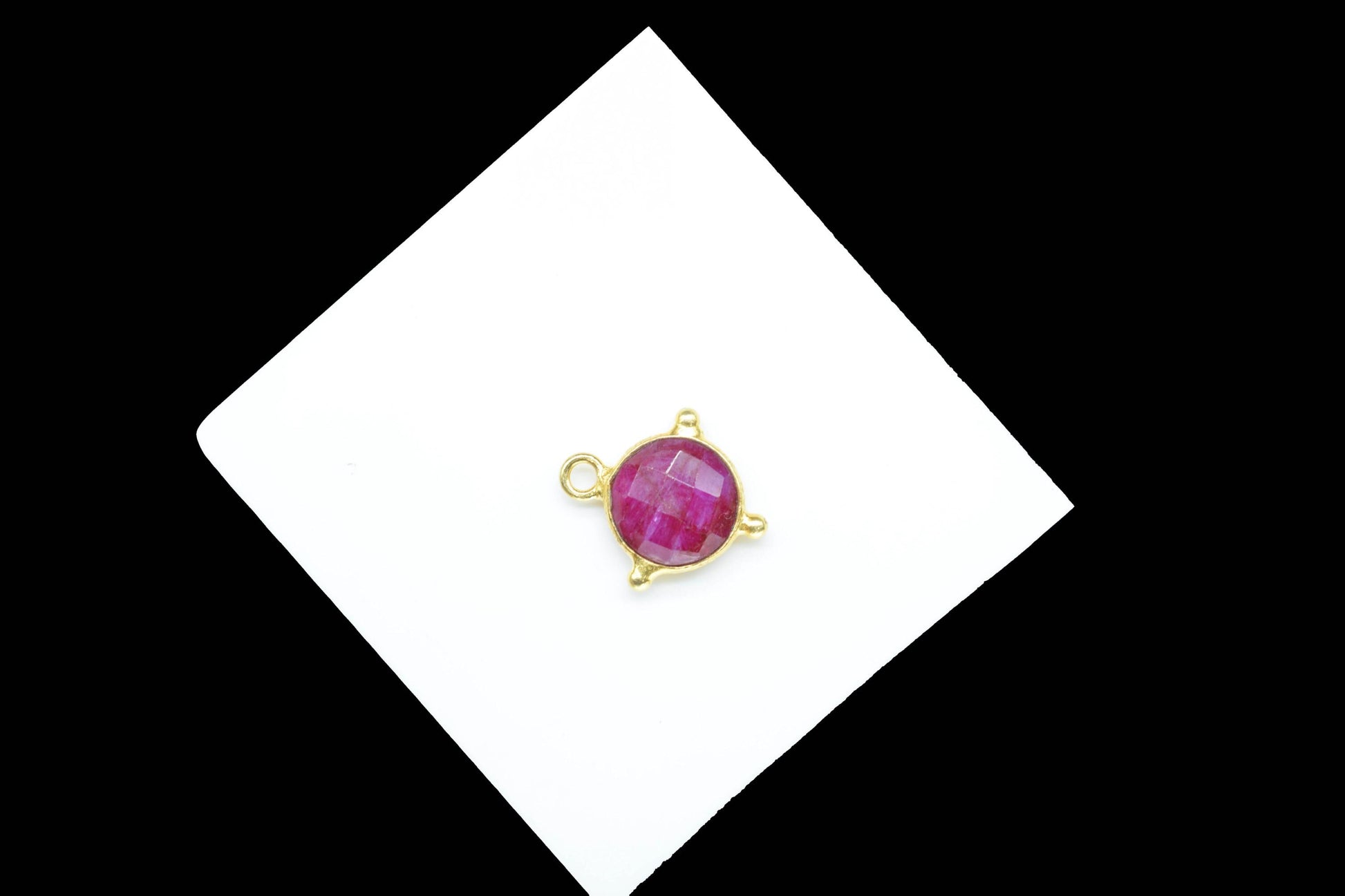Ruby Pendant/Gemstone Component/Necklace Pendant/Round Shape Charm/Single Bail Charms/Wholesale Supply/Gold Plated Jewellery/B'day Gift