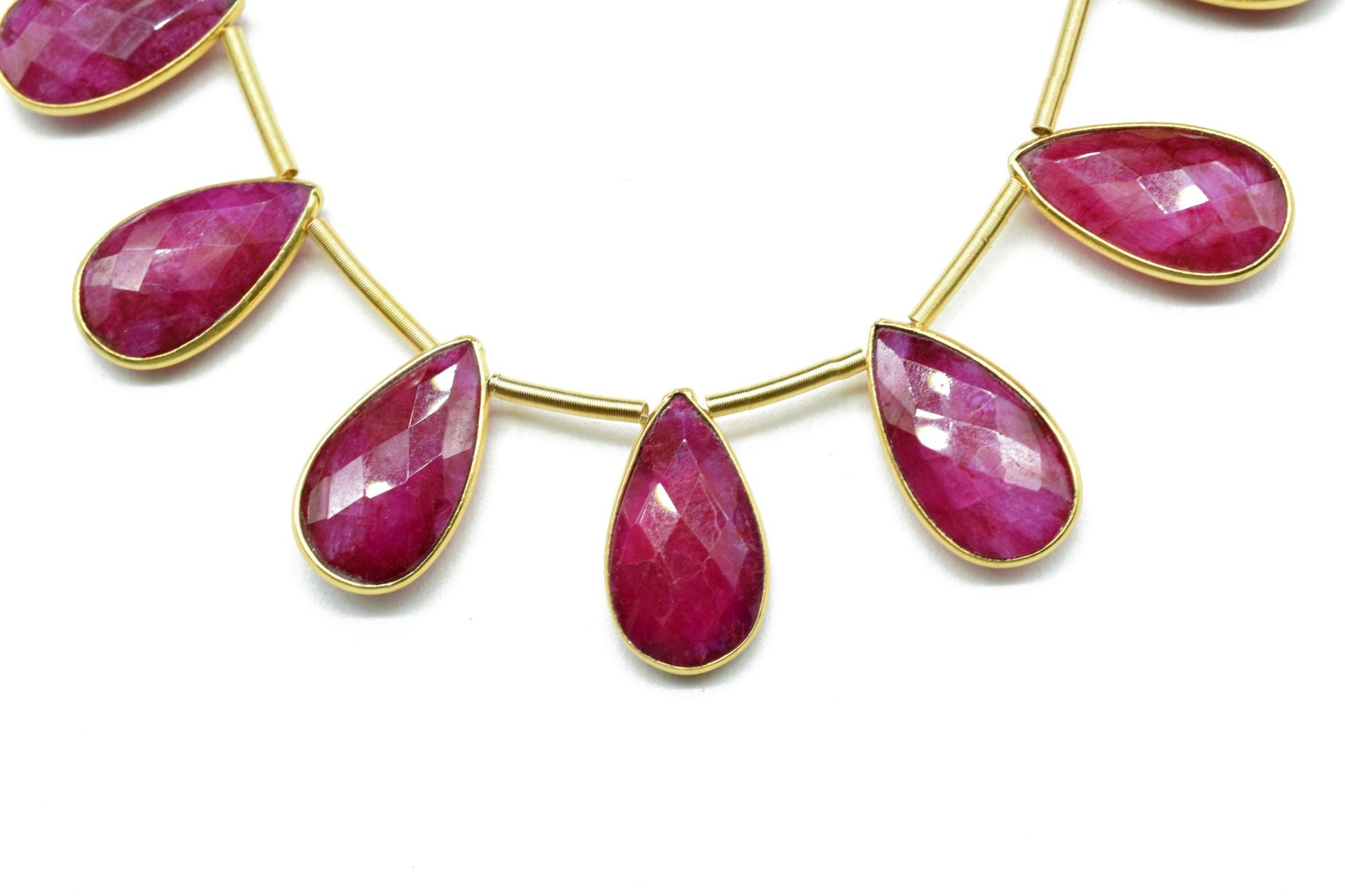 Ruby Side to Side Drilled chrams,Faceted Teardrop Gold Bezel Rim,pendant,earring findings,Ruby connector,Brass Frame Gemstone drill bezel