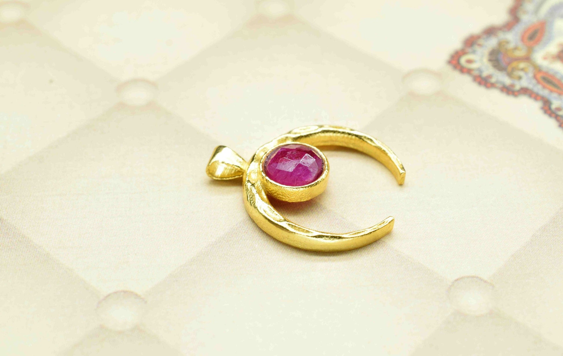 .Ruby , Single Bail Charm , Ruby Connector Pendant , Gold Plated Connectors , Single Bail Gemstone Connector Charm