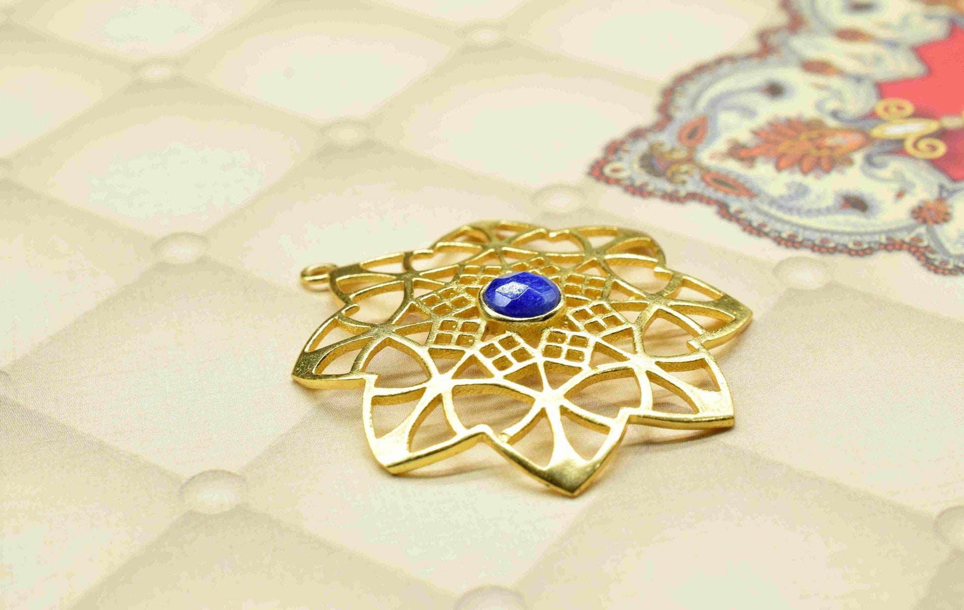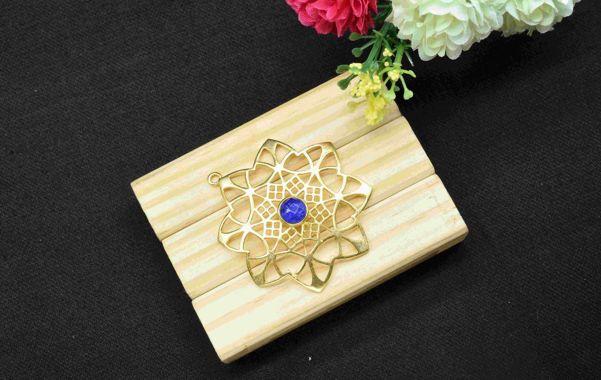 .Sapphire Gemstone Component, Single Bail Charm , Sapphire Connector Pendant , Gold Plated Connectors , Pendant Jewelry , Earring Component