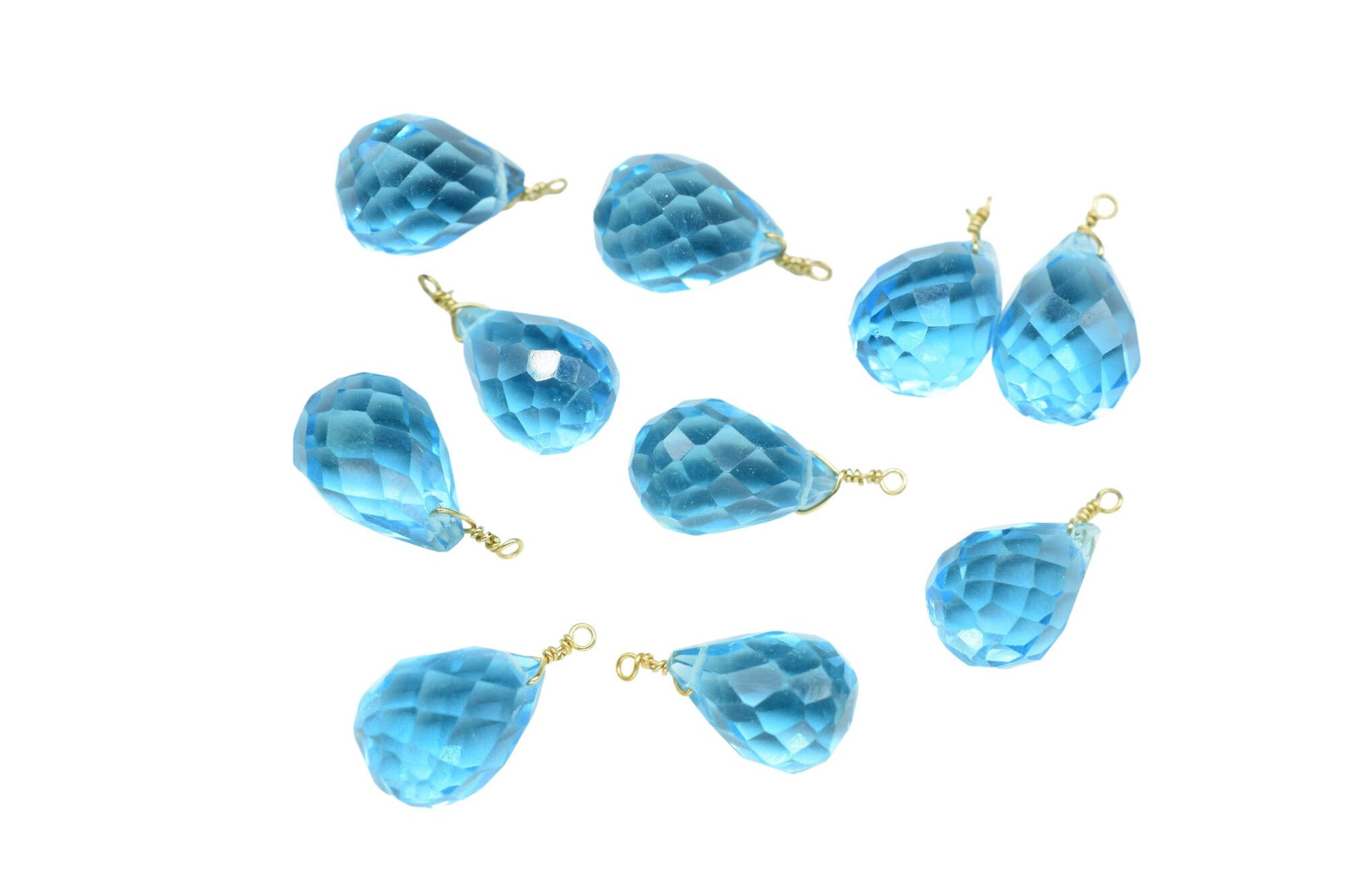 Sky Topaz 10x14mm Faceted Drops,Sky Topaz Wire Wrapped Gemstone Connector,Sky Topaz dainty Pendants ,Topaz Connector Charms,Wife Gifts,