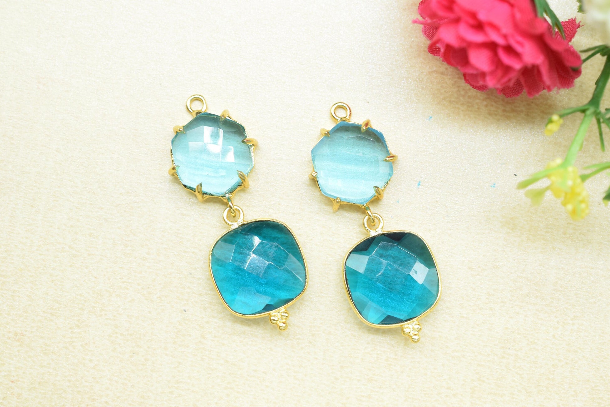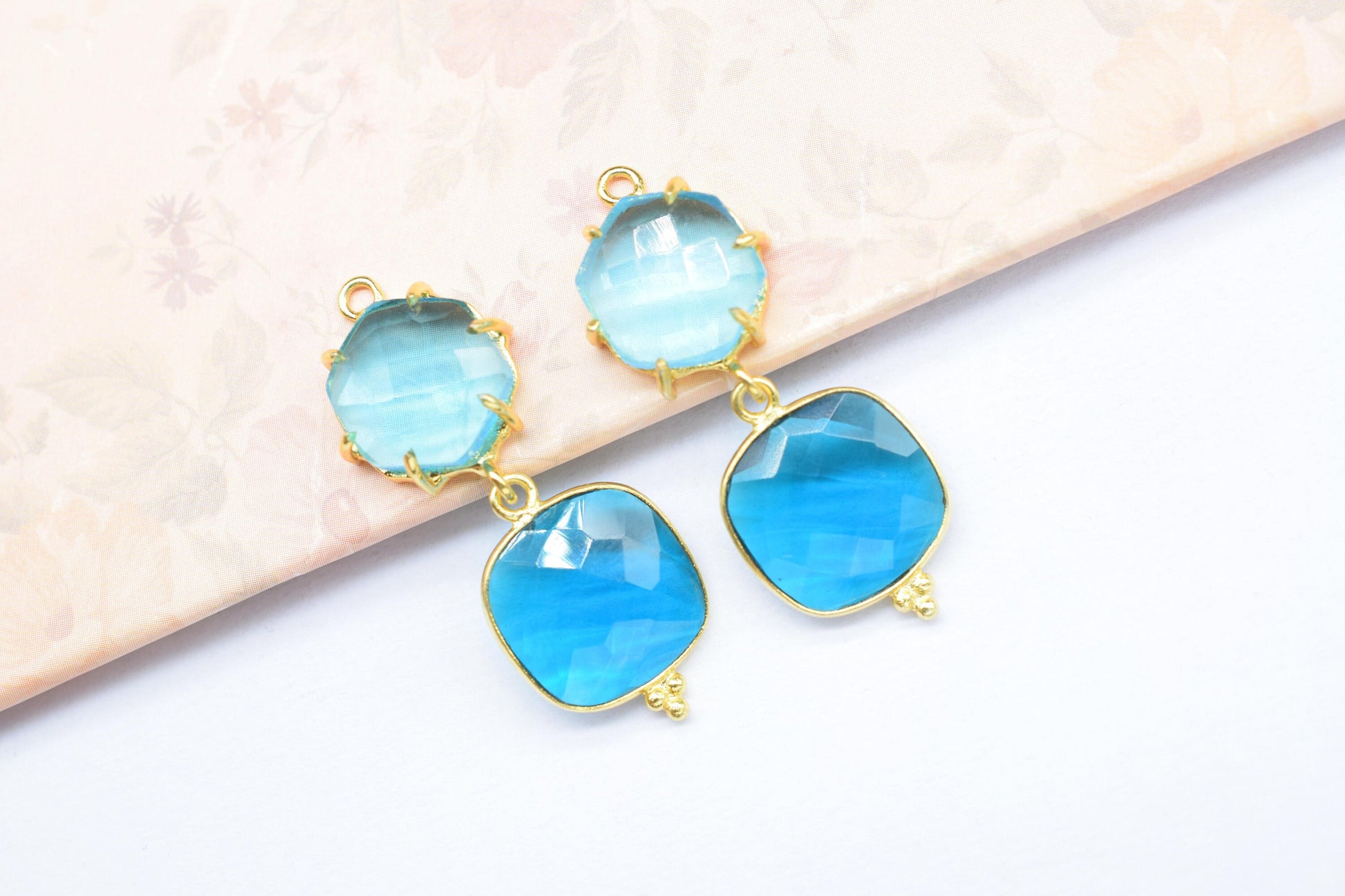 Sky Topaz Bezel Charm Connector/Station Bezel Link Pendant/Prong Bezel Jewelry/Handmade Jewelry/Neon Apatite Pendant/Connector/B'day Gift