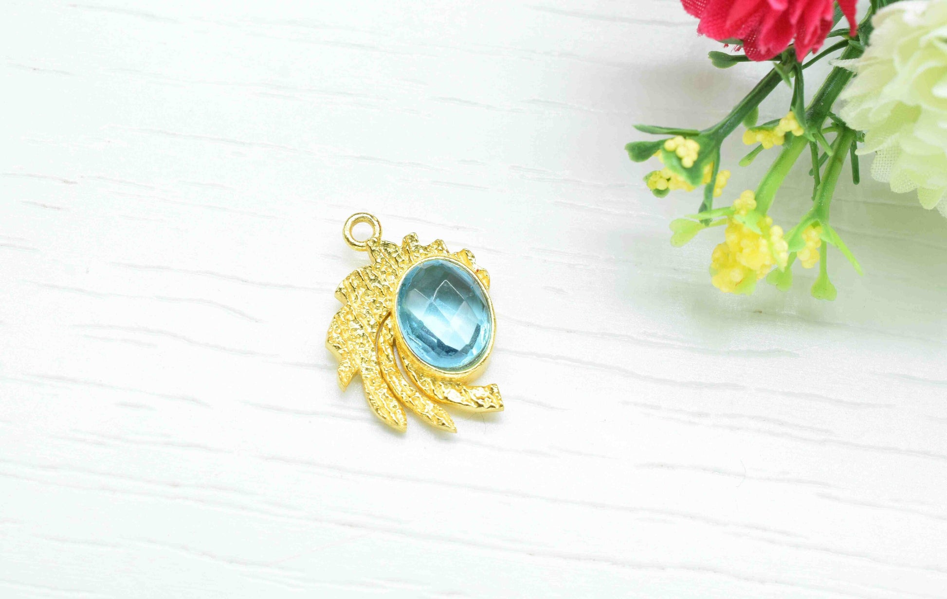 Sky Topaz Pendant , Gemstone Handmade Pendant , Bulk Gemstone Pendant , Gold Plated Connectors ,Single Bail Gemstone Connector Charm
