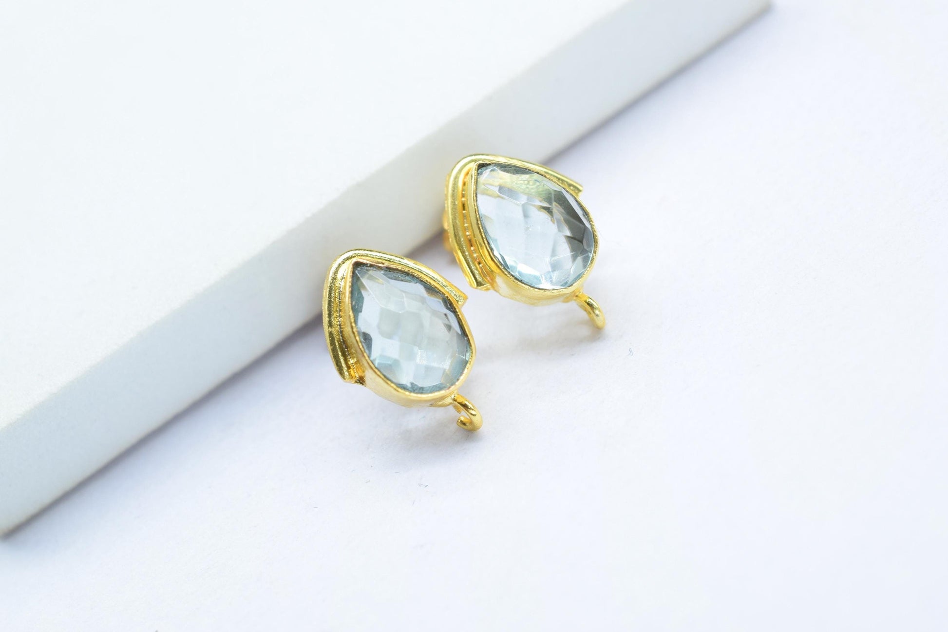 Sky Topaz Studs Connector/Gold Plated Earring/Handmade Studs/Bezel Set Studs/Teardrop Earring/Women Jewelry/Connector Studs/B'day Gift