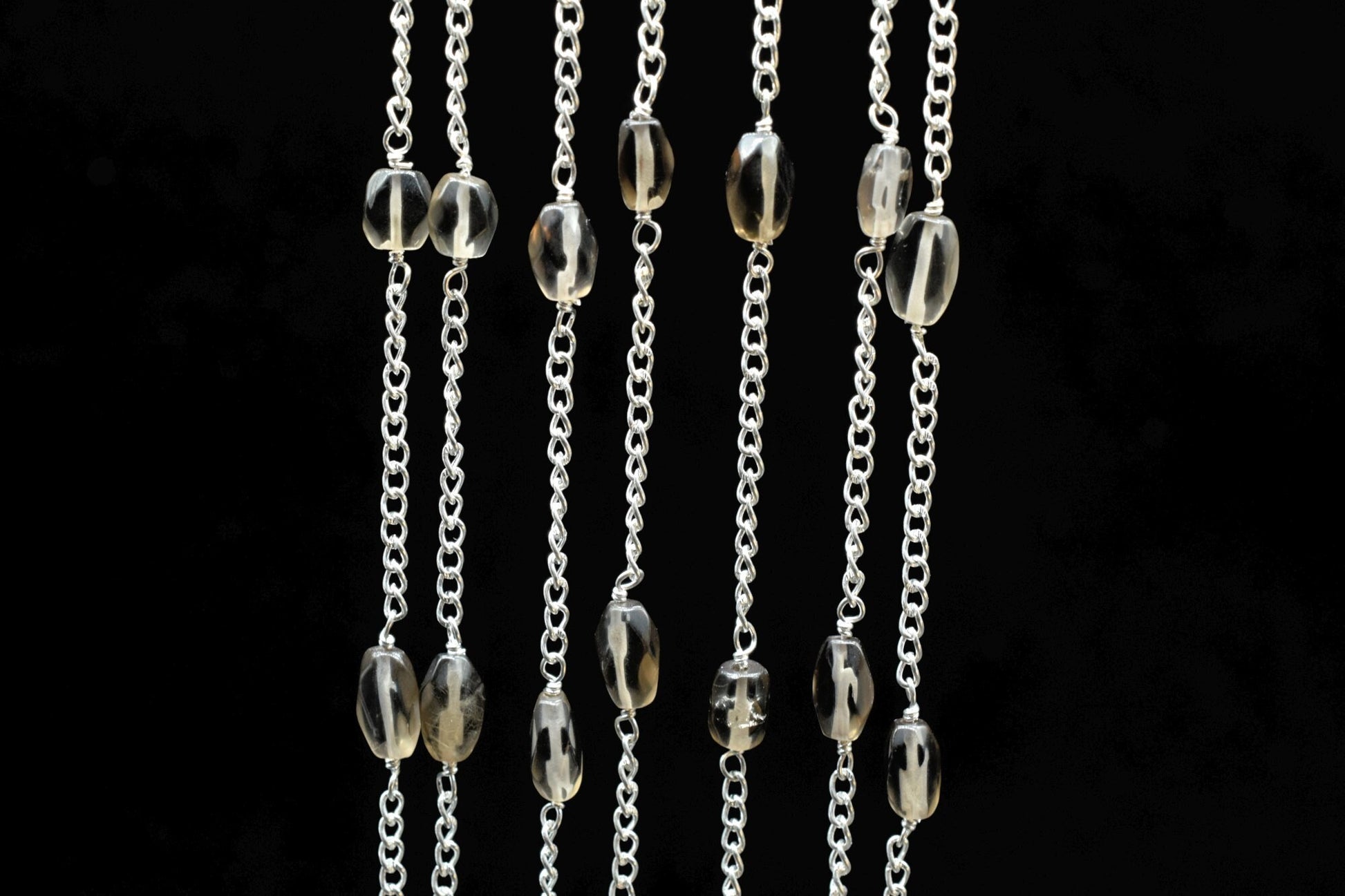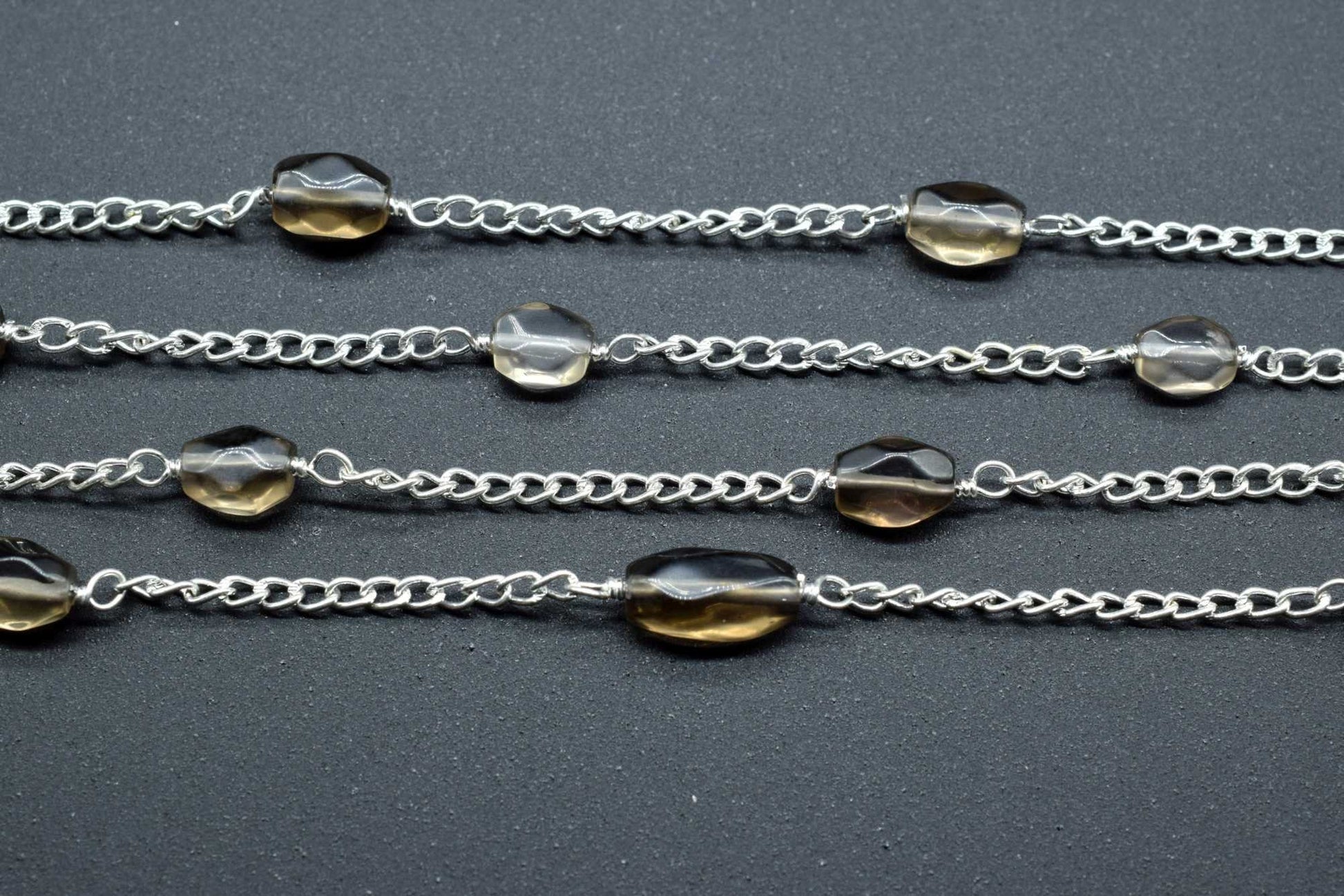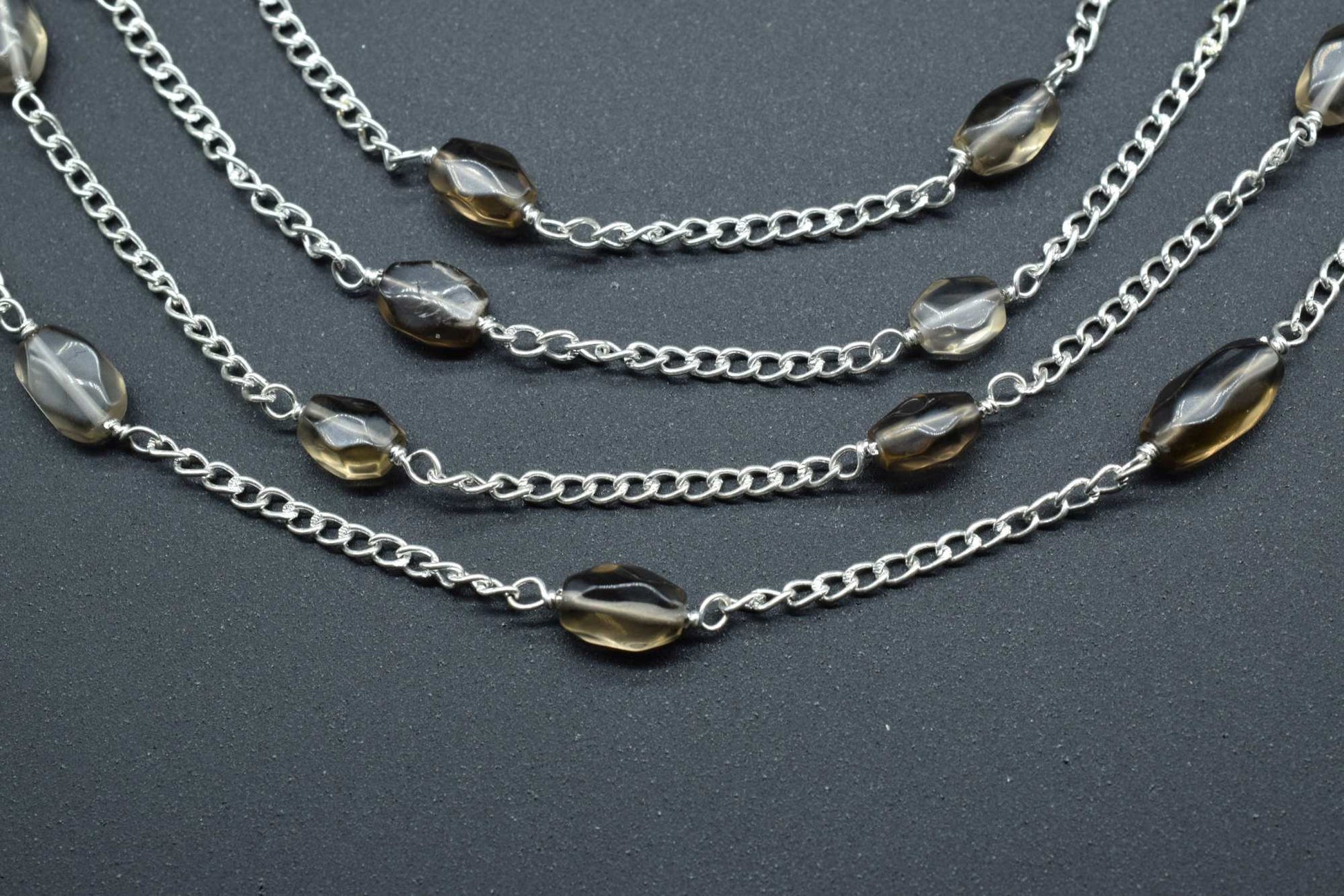 Smoky Oval Shape Rosary,Smoky Quartz Beads Rosary,Jewelry Making Rosary,Smoky Wire Wrapped Rosary,Smoky Briolette Beads,Smoky beaded Chain