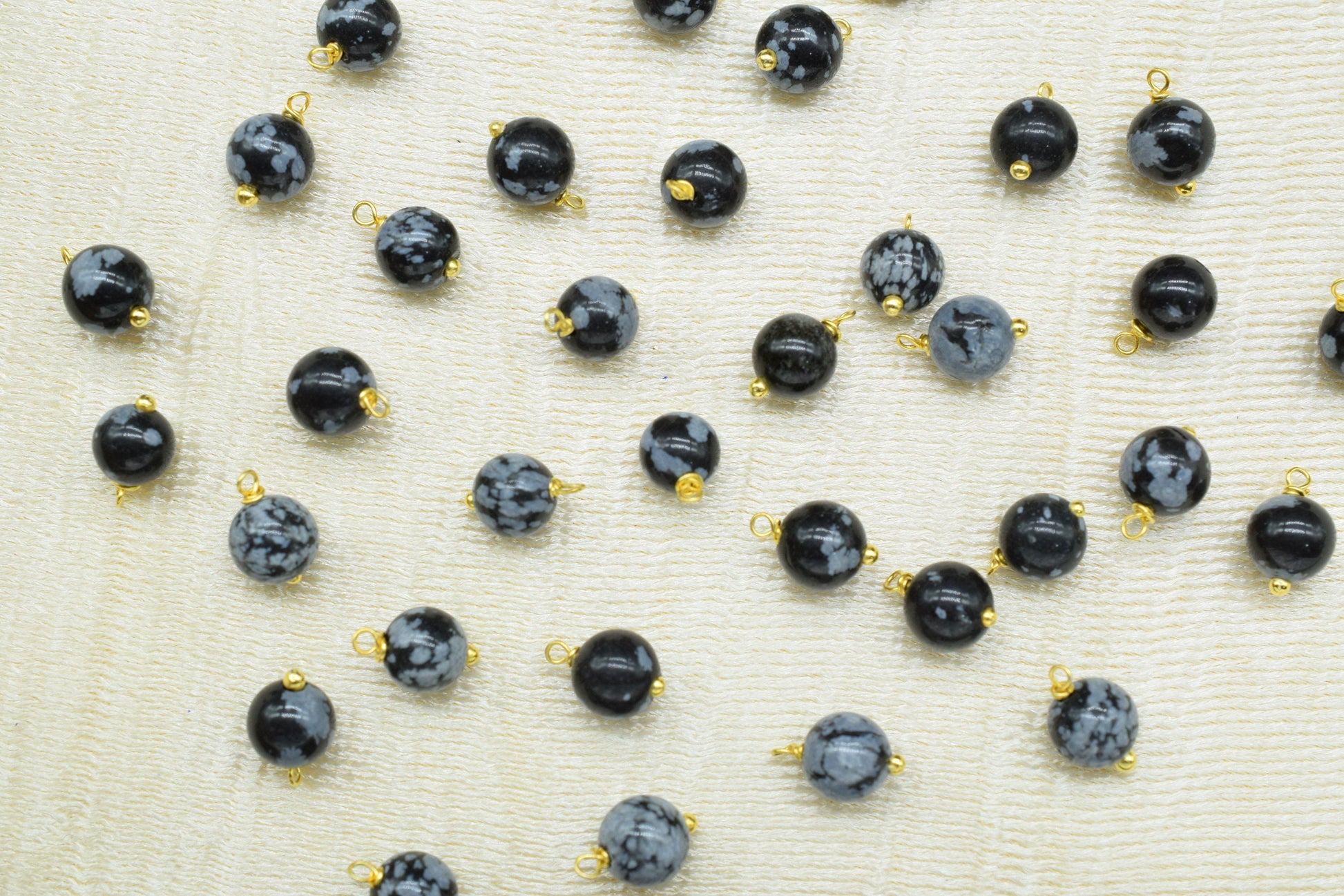 Snowflake Obsidian 6mm Round Smooth Beads/Earring Components/Obsidian Single wire wrapped Beads/Round Beads Connector/Gemstone Beads/Gift