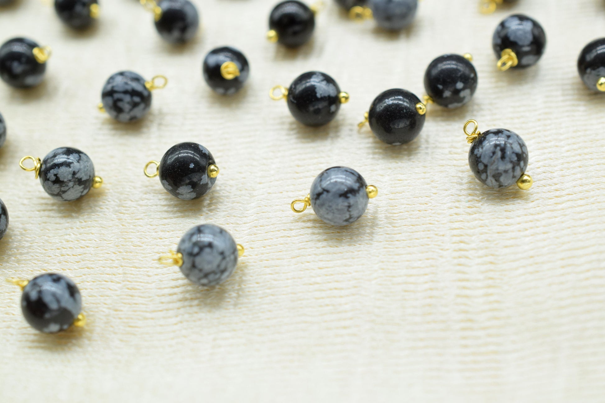 .Snowflake Obsidian 6mm Round Smooth Beads/Earring Components/Obsidian Single wire wrapped Beads/Round Beads Connector/Gemstone Beads/Gift