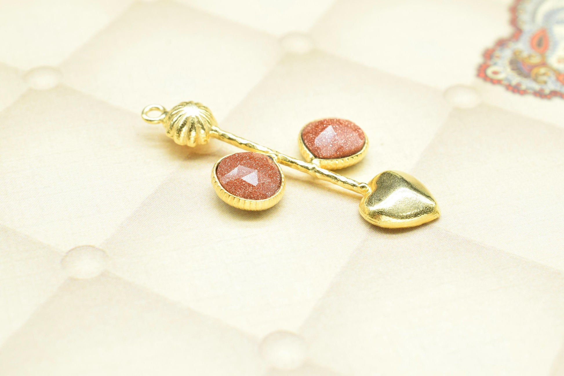 Sunstone Pendant/Gemstone Component/Faceted Cut Sunstone/Single Bail Charm/Necklace Pendant/Heart Shape Charm/Wholesale Supply/Gold Plated