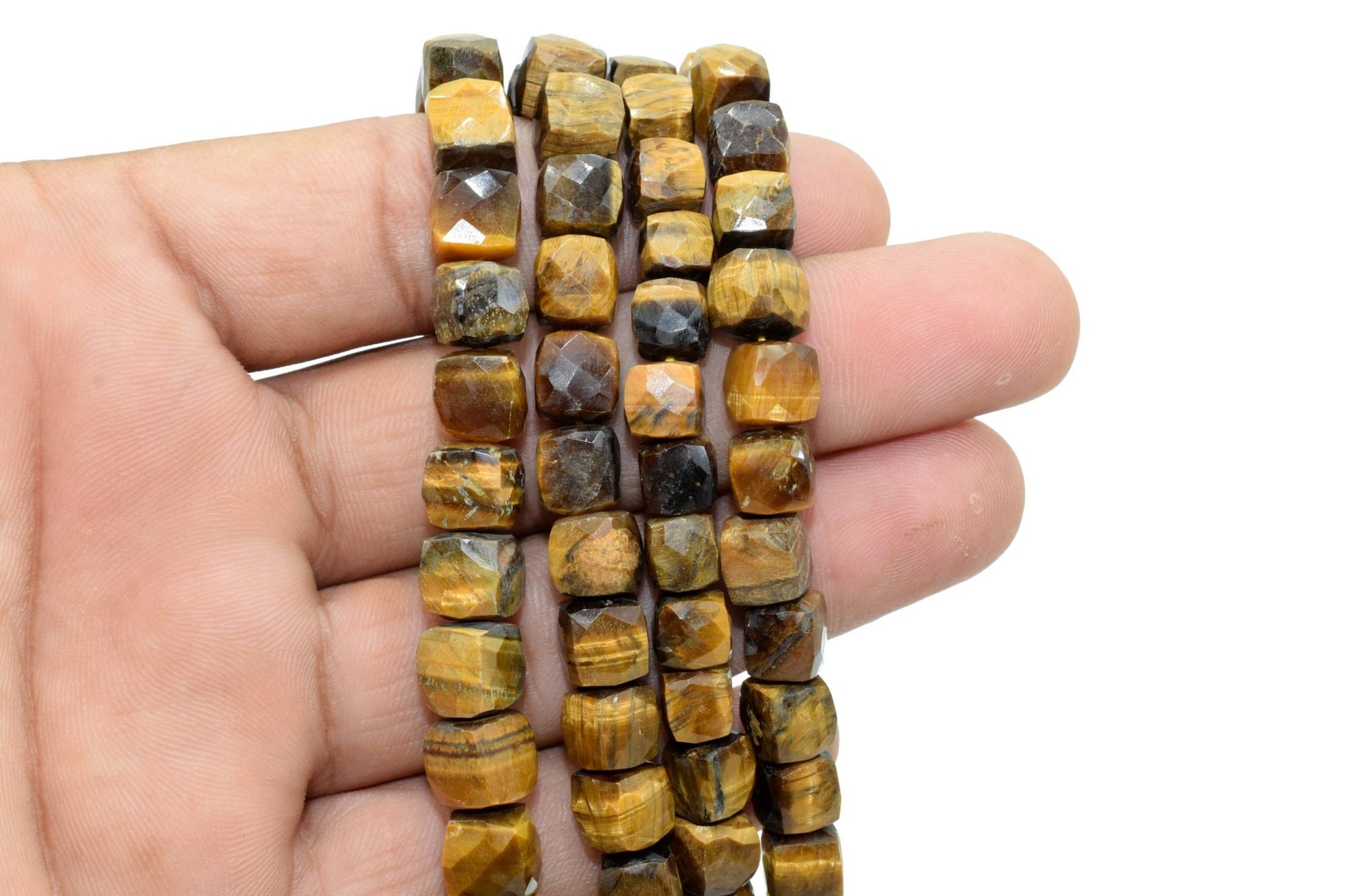 Tiger Eye 7mm faceted Cube Beads,Tiger Eye Box Bead,Tiger Eye briolette,Tiger Eye 3D Cube Box 8" strand,Tiger eye jewelry,jewels making bead