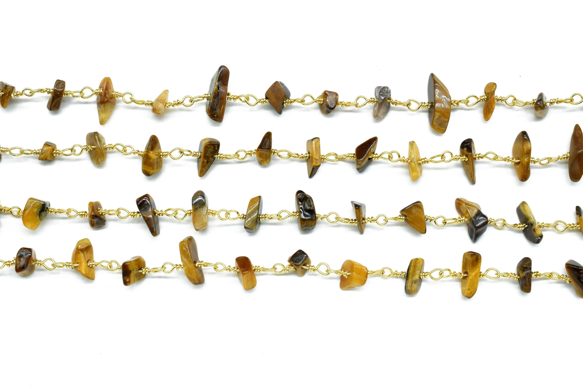 Tiger Eye Chips Rosary Chain,Nugget Rosary Chain,,Finding Wire Wrap Necklace Chain,Gemstone Rosary Chain,Handmade Jewelry Carft Supplies