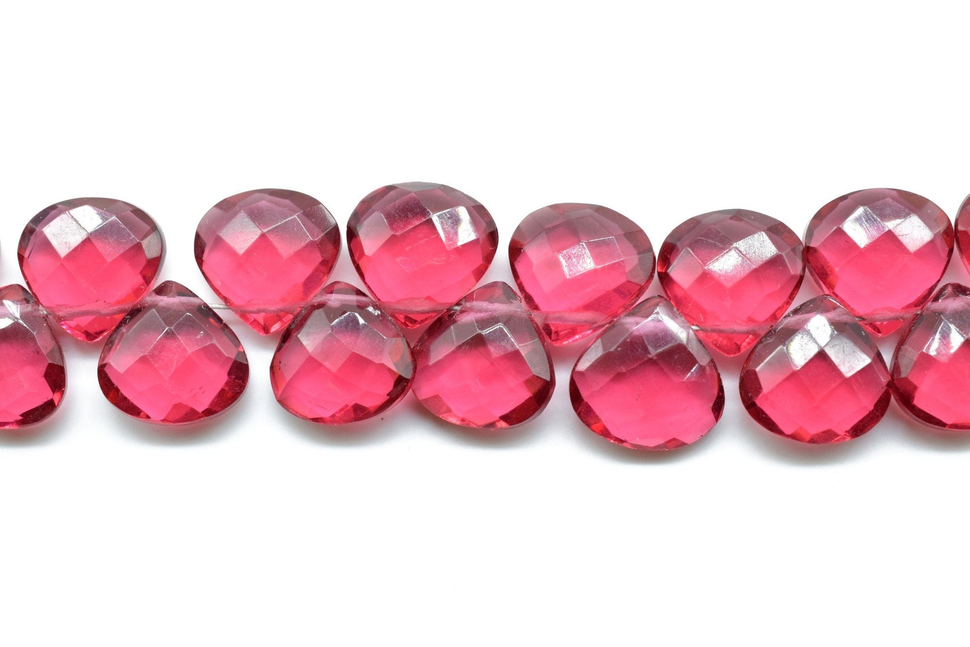 Tourmaline Heart Shape Briolettes,Precious Briolettes,10mm Heart Shape Faceted beads,Pink Briolettes,AAA Quality beads,50 pcs full Strand