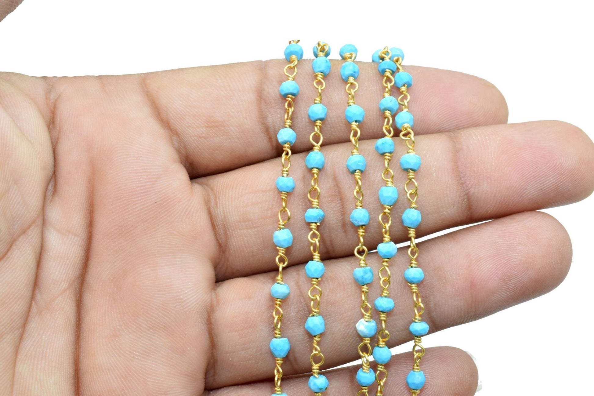 Turquoise 3mm Beaded Chain,Beaded Gold Plated Rosary Chain,Turquoise Rondelle Faceted Rosary Chain,jewelry Making,Finding,Bulk Roll Wire