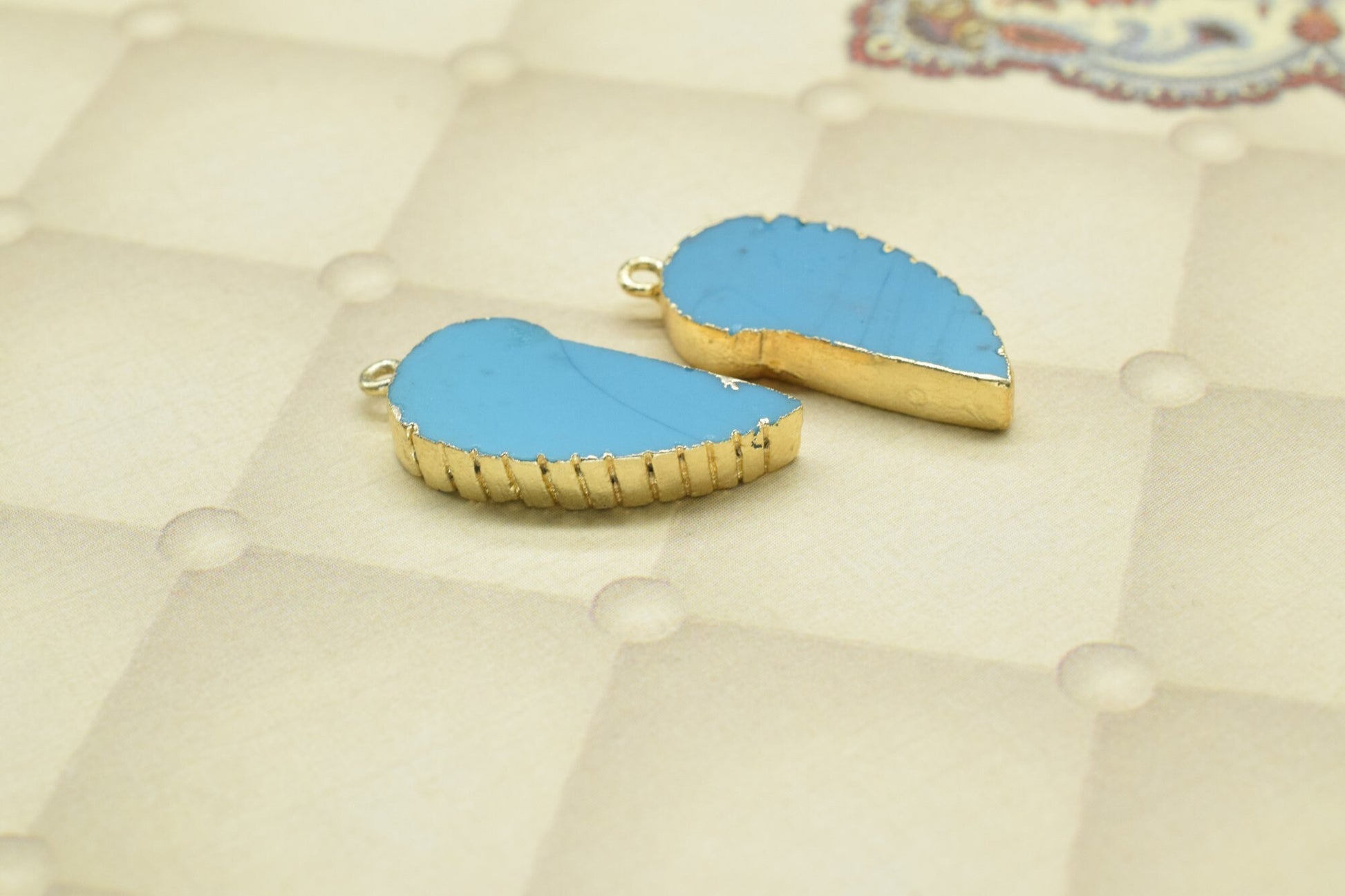 Turquoise Angel Wings Pendant,Handmade Pendant,Wing Pendants Charms Necklace,Single Bail Connector,Gemstone Angel Wings Earring Connector
