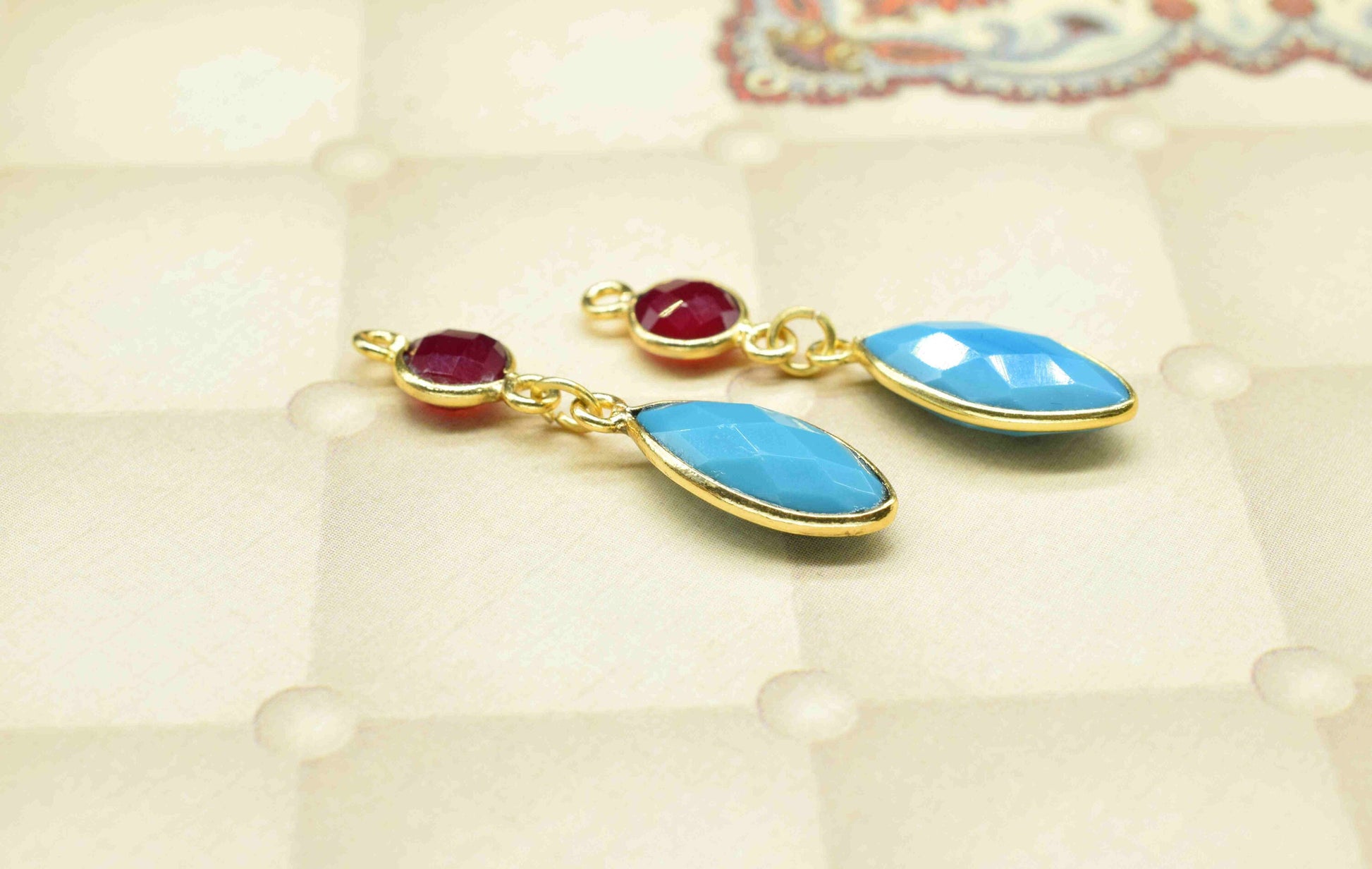 Turquoise Dangle pendant Charms,Garnet Connector,Handmade jewelry,Component pendant,Station Bezel Link,Multi Gemstone Dangle Earring,Gift