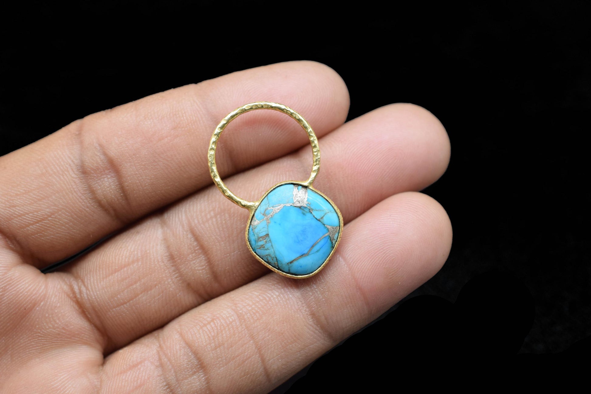 Turquoise Pendant/Gemstone Component/Single Bail Charm/Necklace Pendant/Cushion Shape Charm/Wholesale Supply/Gold Plated Jewellery/Gift
