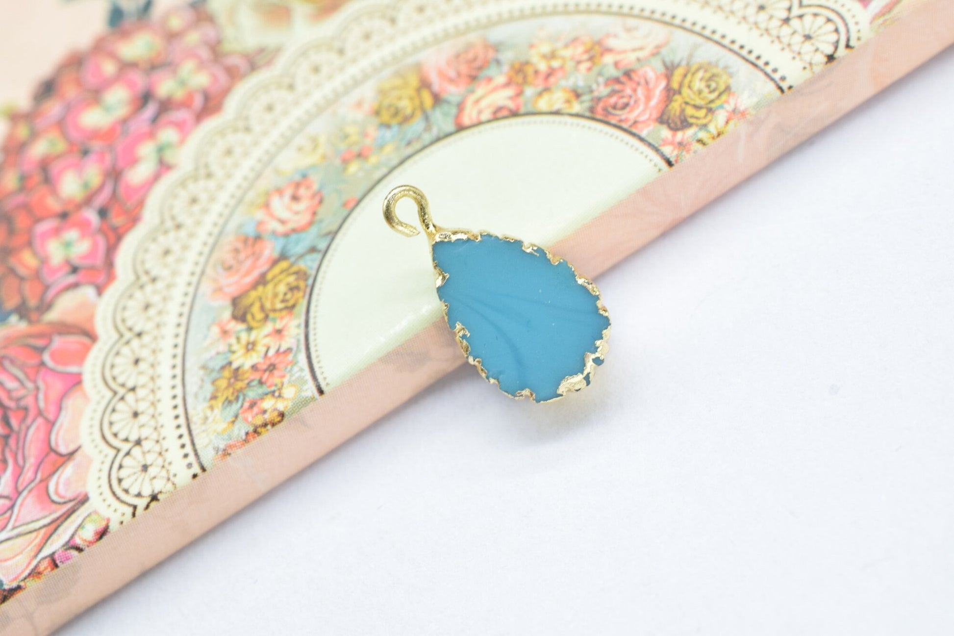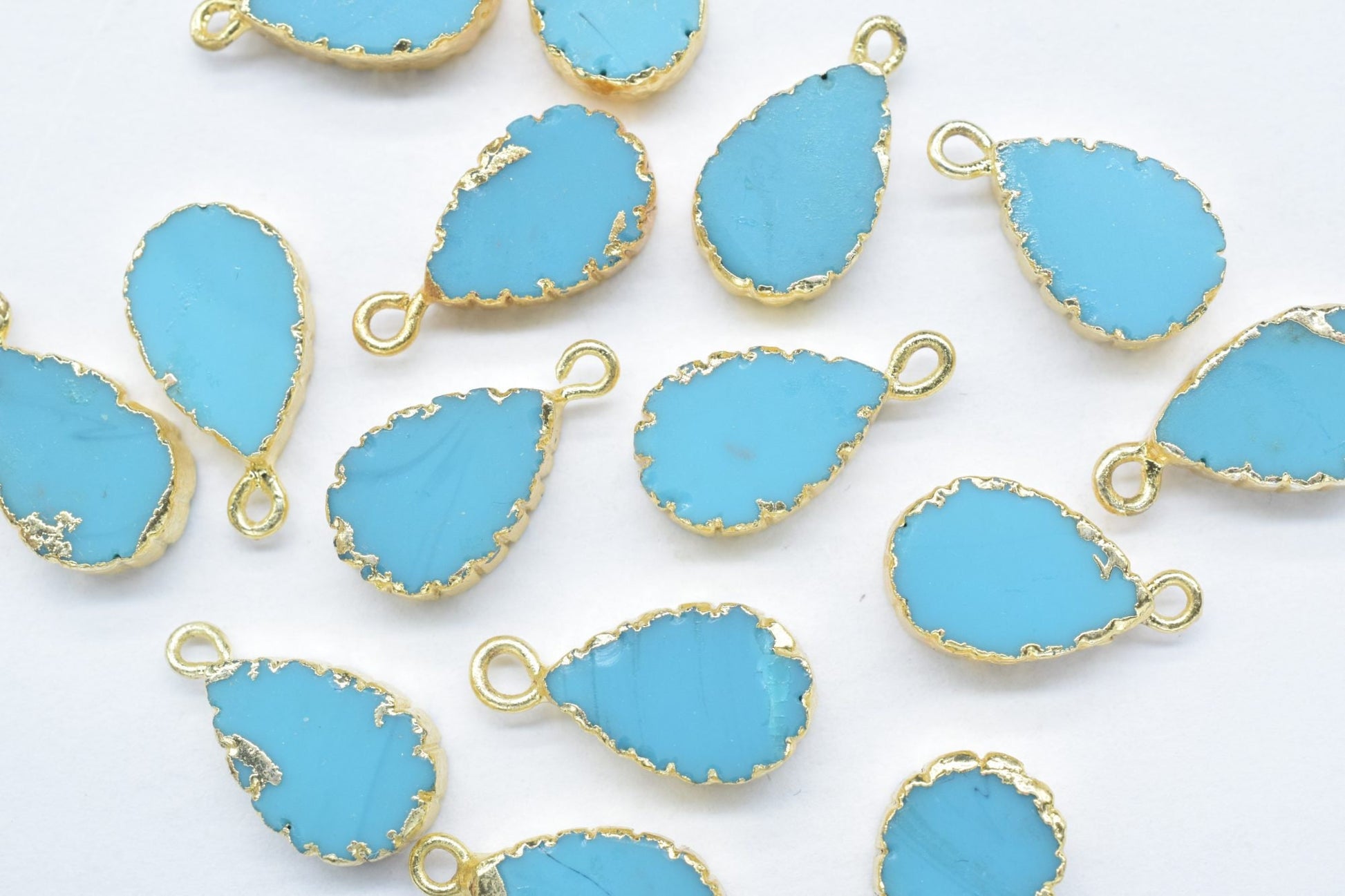 .Turquoise Teardrop Pendant Charms,Handmade Cabechon Pendant,Necklace Connector,Charms Jewelry,Gemstone Electroplated,Single Bail Connector