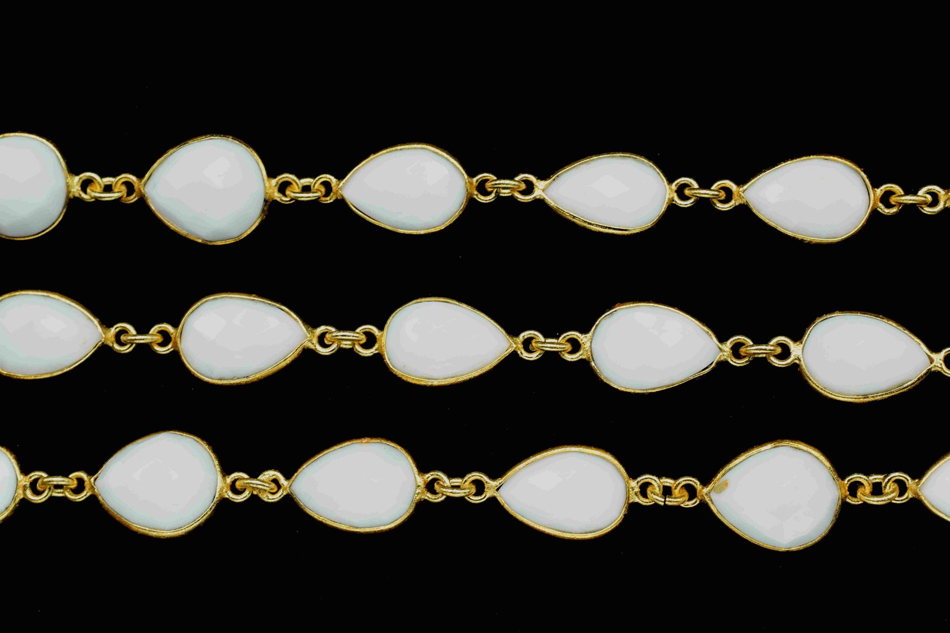White Agate Gemstone 10x12mm Teardrop Shape Bezel Chain,White Agate Gemstone Gold Plating Bezels Link Chain,White Agate One Side Cut Jewelry