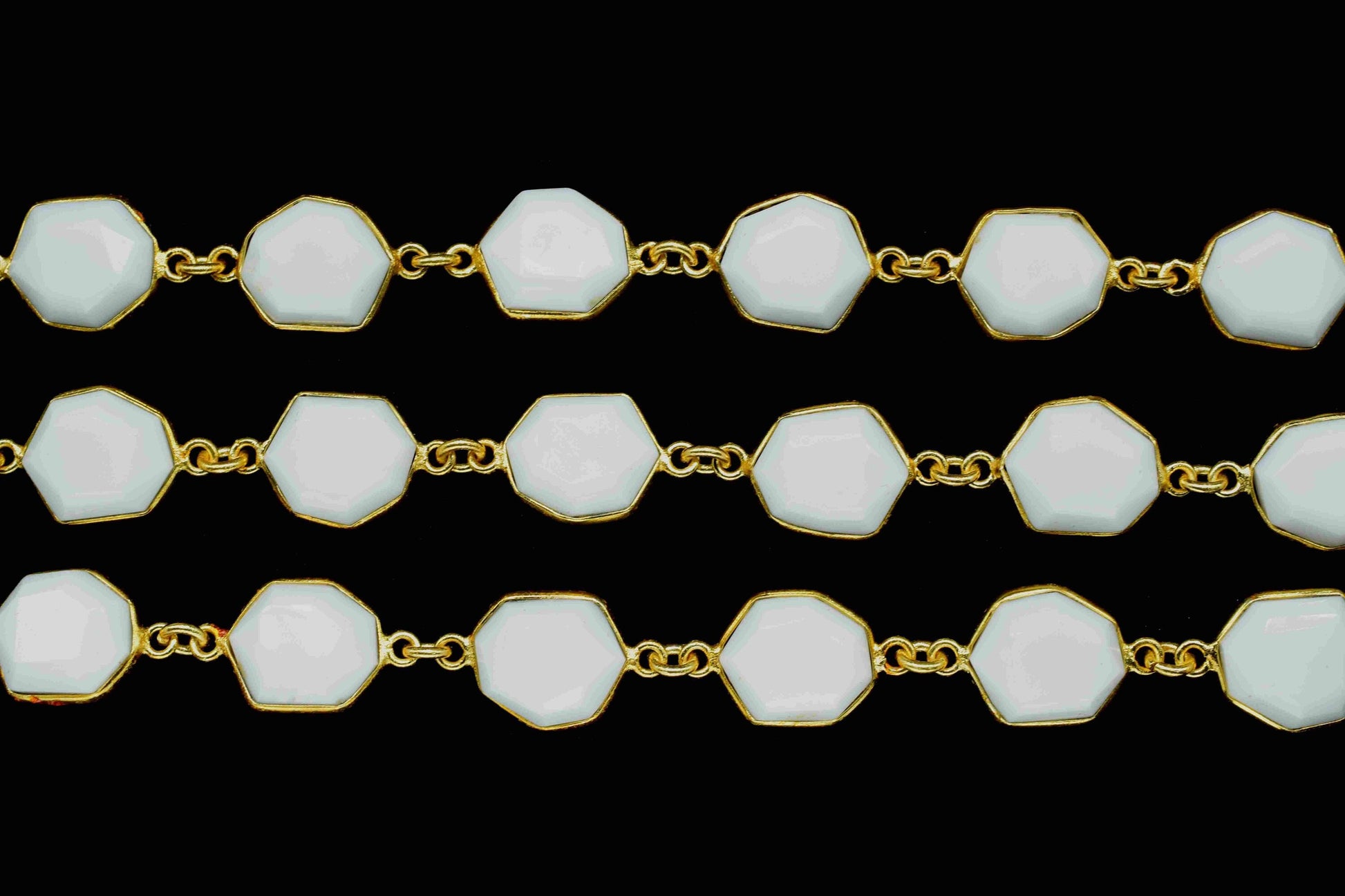 White Agate One Side Faceted 11x13mm Hexagon Shape Bezel Chain,White Agate Chain Jewelry,White Agate Gemstone Gold Plating Bezels Link Chain