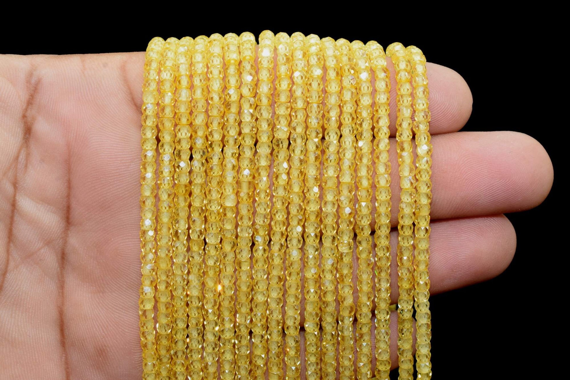 Yellow Sapphire 3mm Faceted Rondelle Beads,Natural Micro Yellow Sapphire Cubic Zircon Faceted Rondelle Beads/Yellow Sapphire Cubic Zirconia